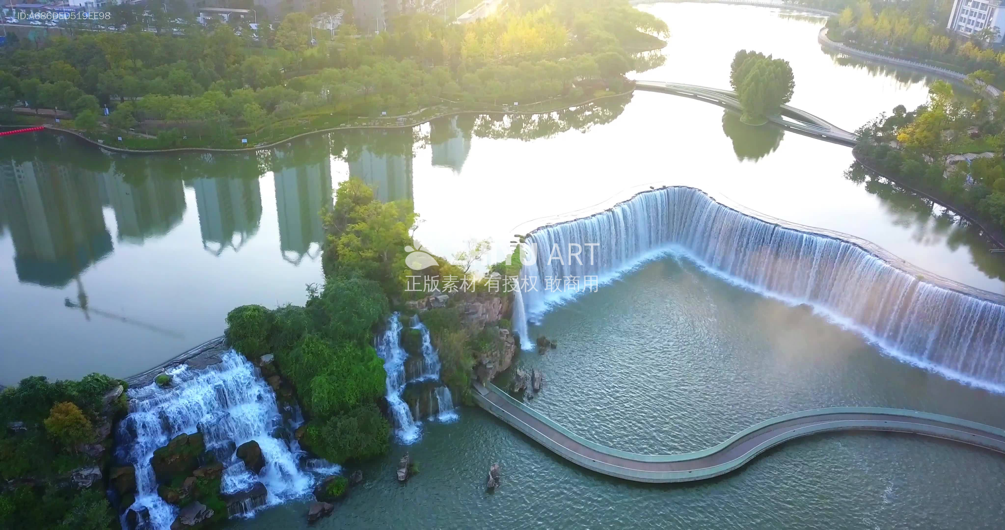 晨雾中的城市瀑布