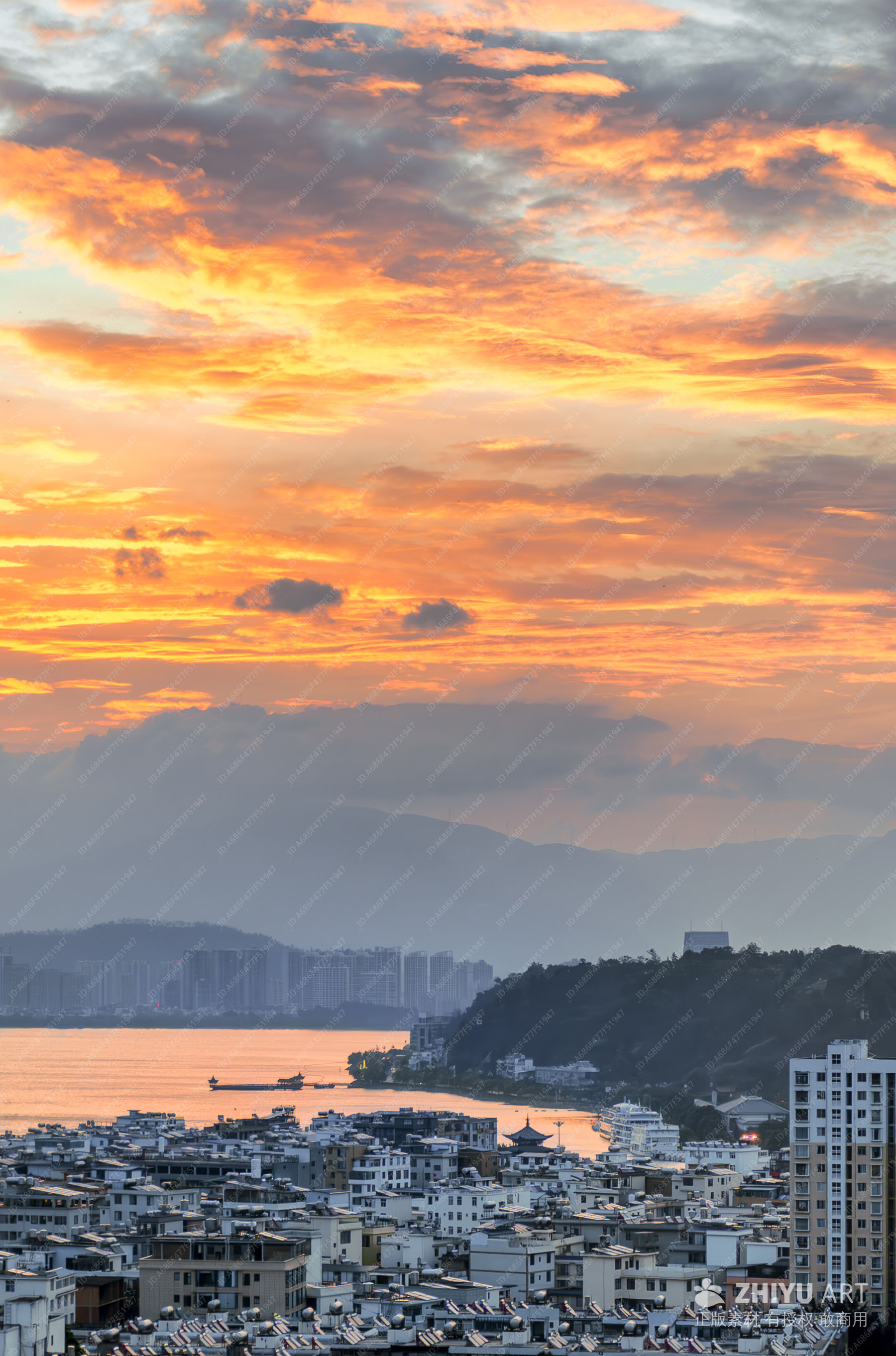日落下的城市湖光