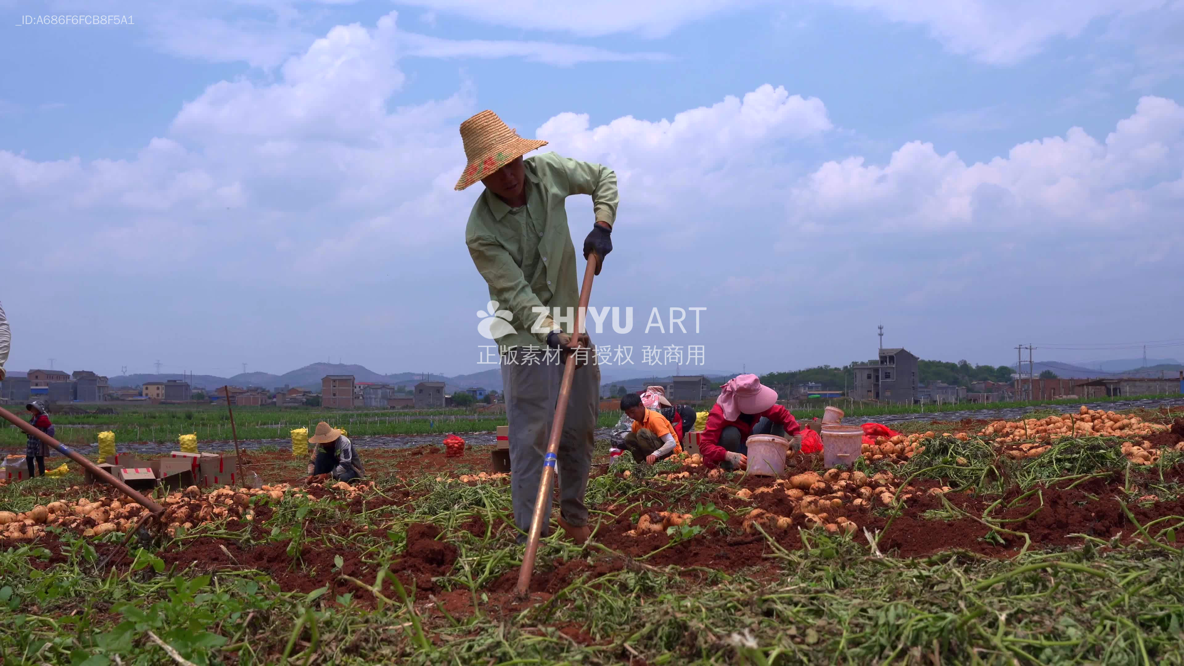 农民在土豆田里锄地
