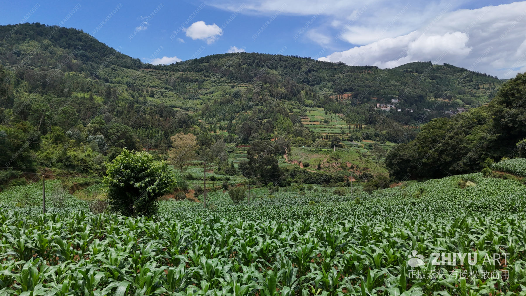 山间绿意盎然的田园风光