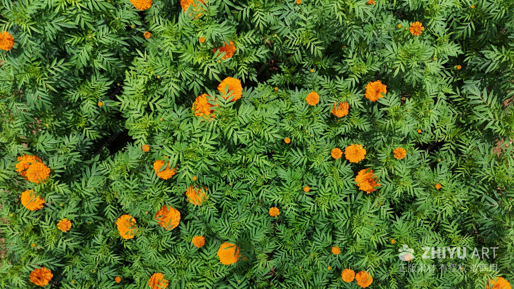 橙花绿植的田野