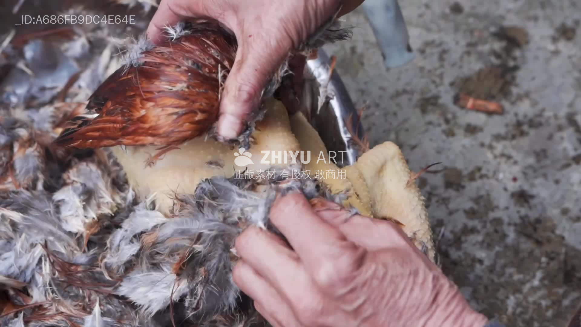 农村老农拔鸡毛