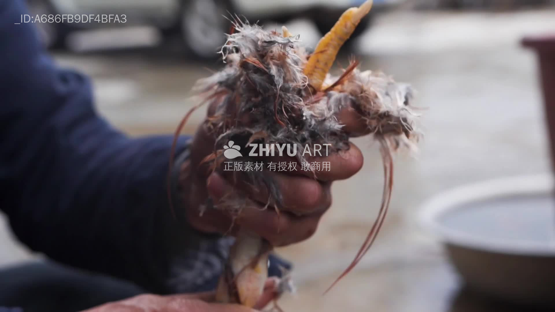 屠宰现场:鸡的羽毛处理