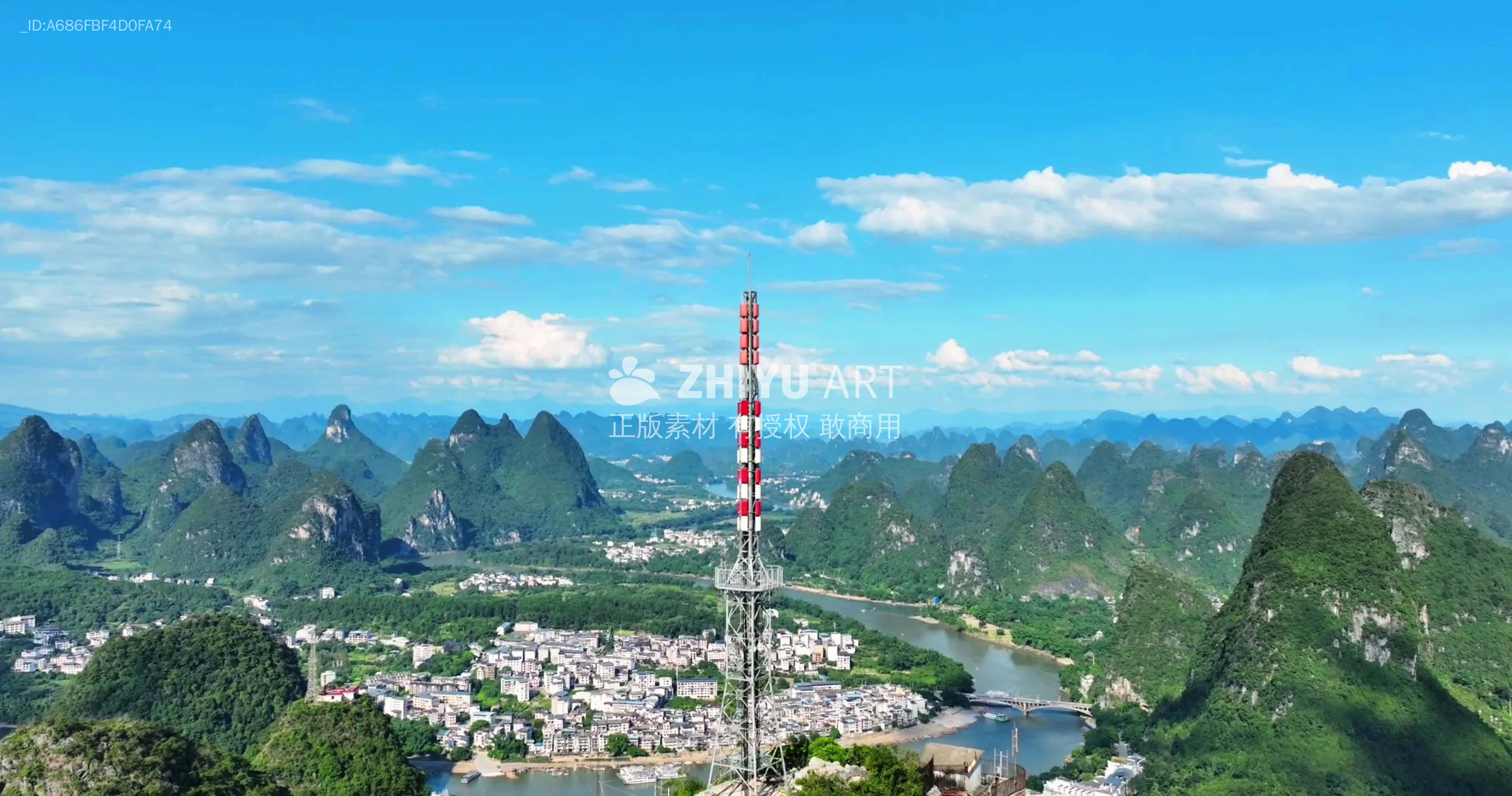 喀斯特山水与通信塔的和谐共存