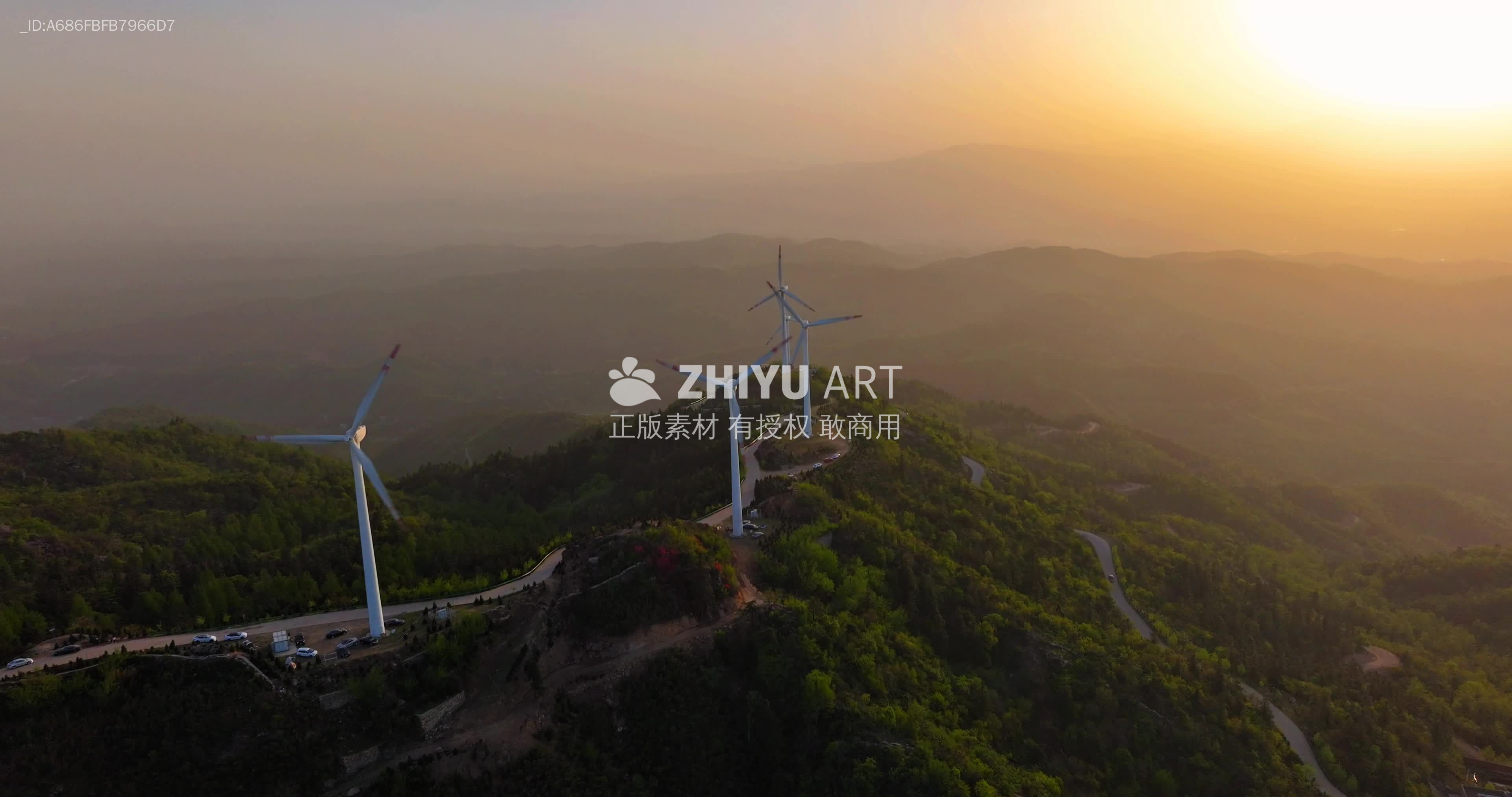 山巅风力发电站的日落时光