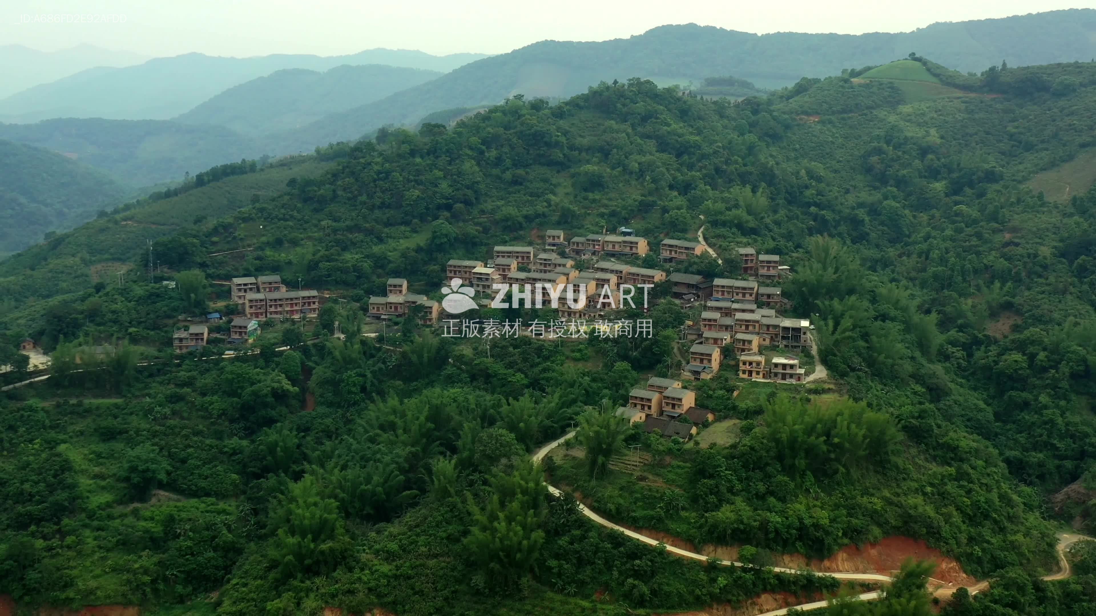 山间绿意盎然的宁静村落