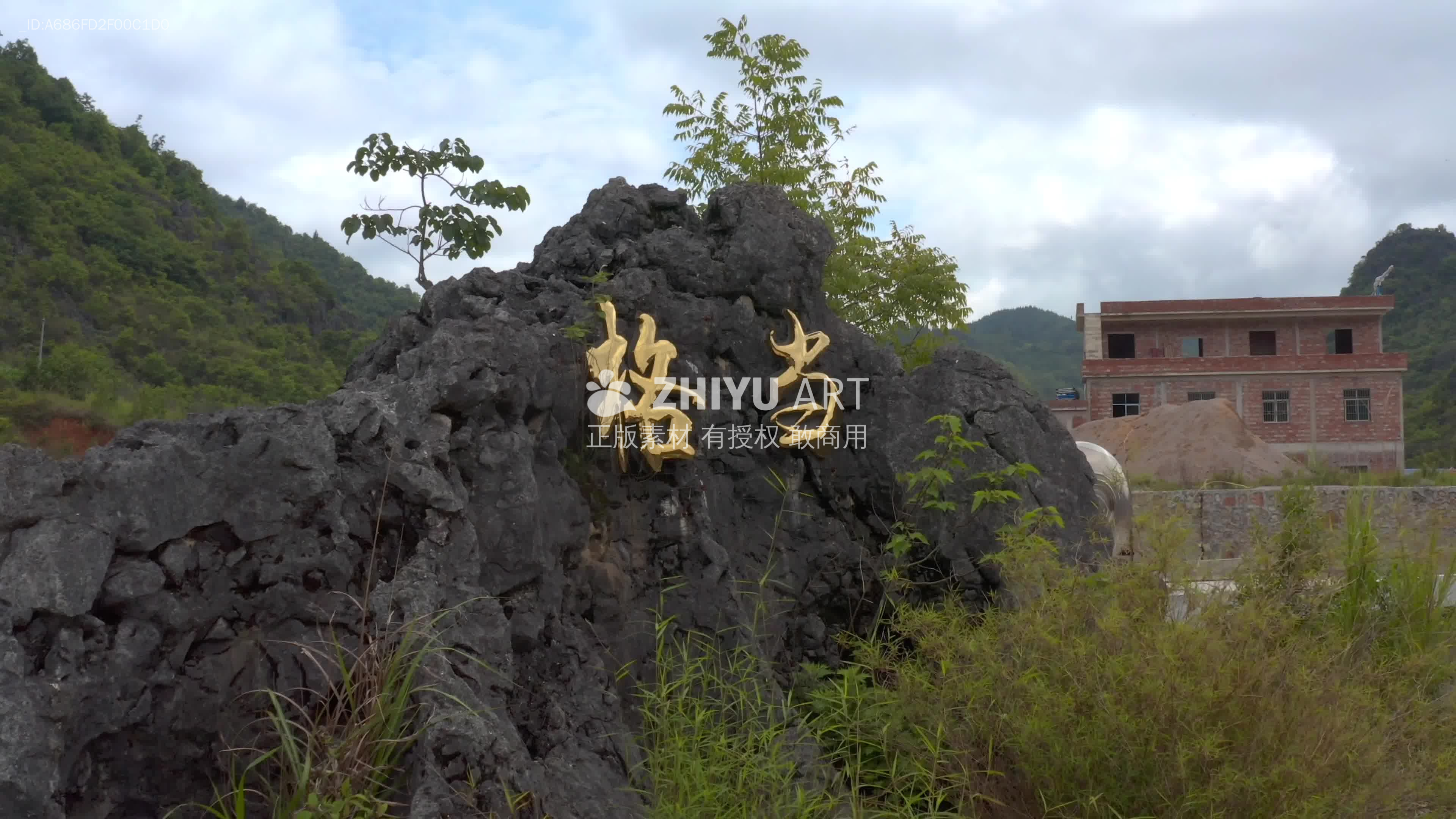 岩石上的中文书法