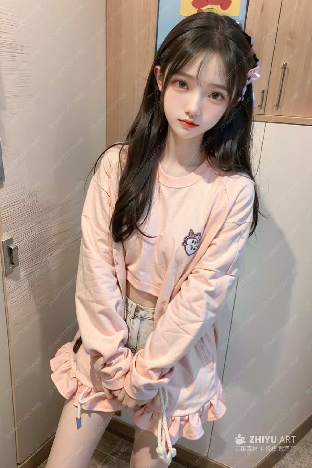 一位身材曼妙的女性站在一个光线充足的极简主义房间里