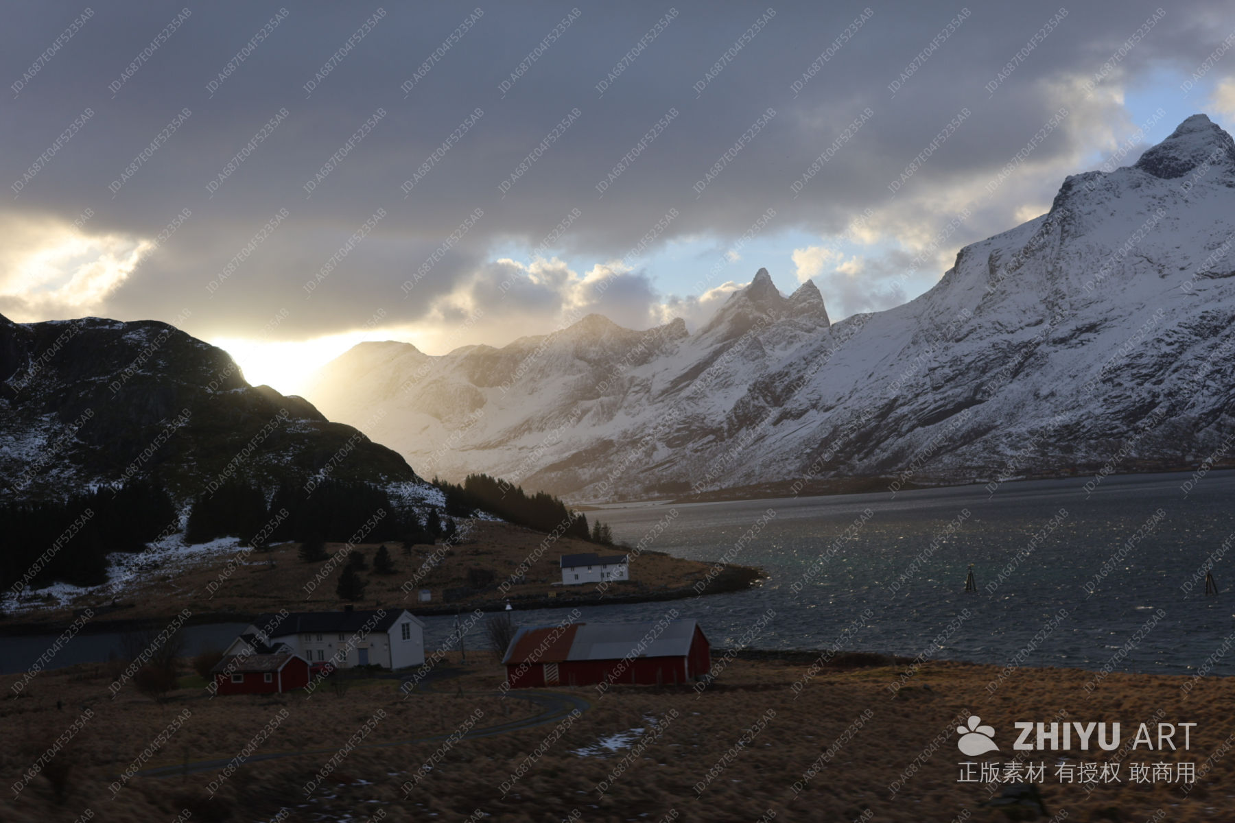 晨曦渔港与雪山