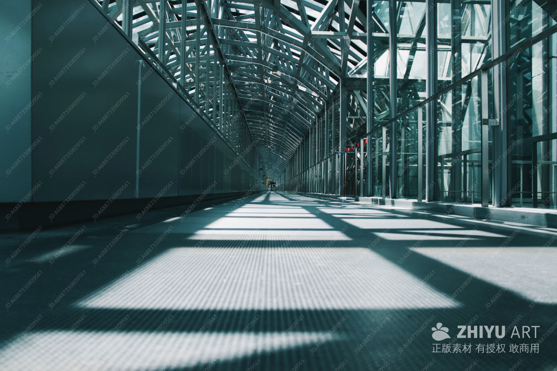 光影交错的蓝色走廊