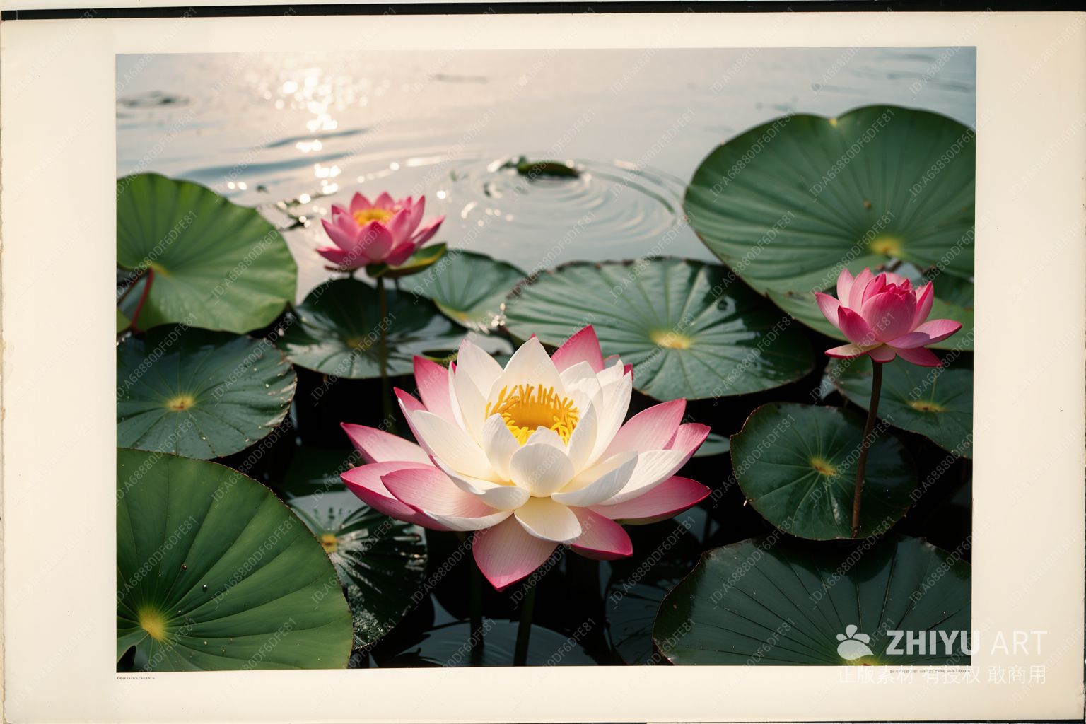 荷花荷叶蓝色荷塘月色插画高清4k 9
