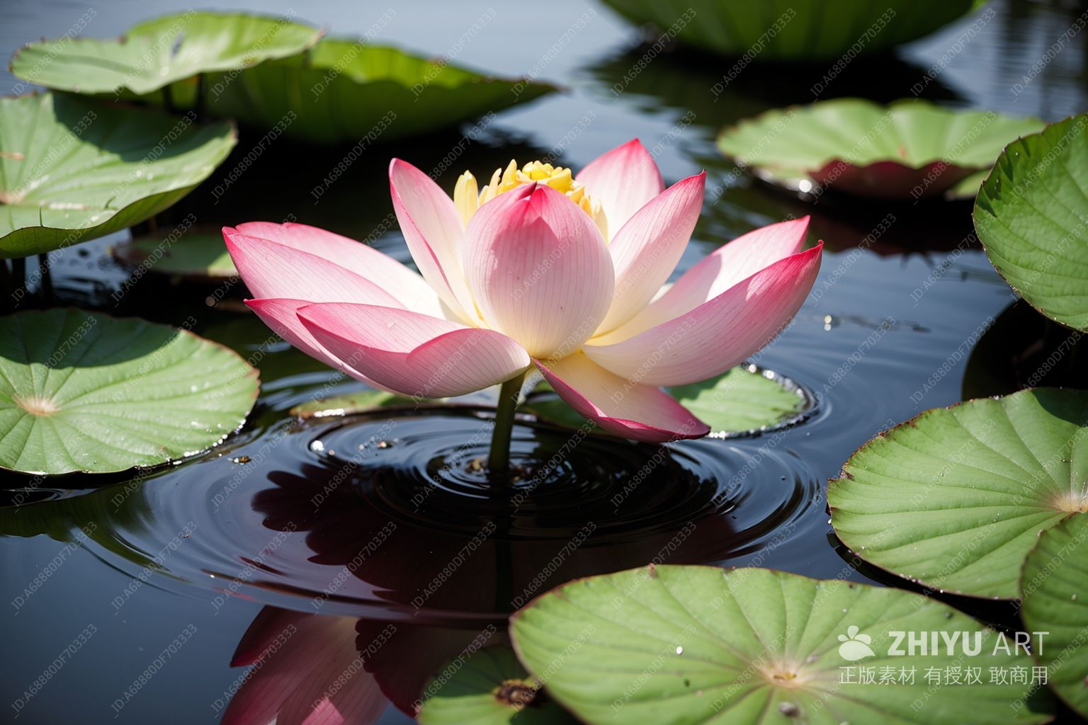 荷花荷叶蓝色荷塘月色插画高清4k 10