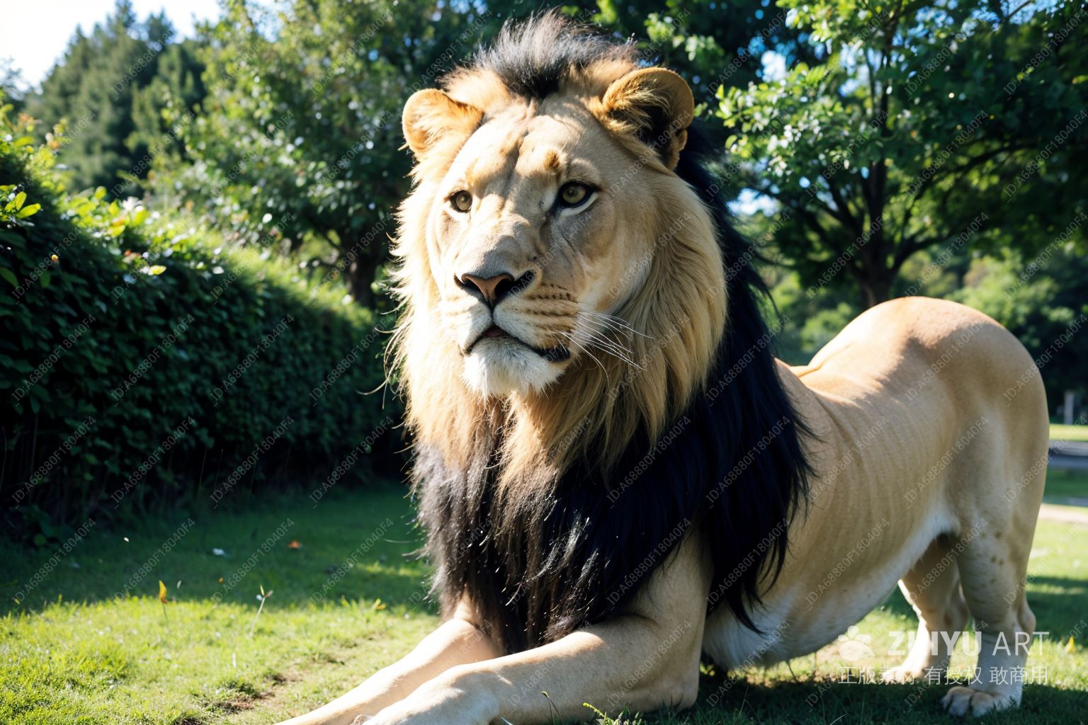 一只鬃毛蓬松的狮子,全身覆盖着黑色和红色的条纹,它