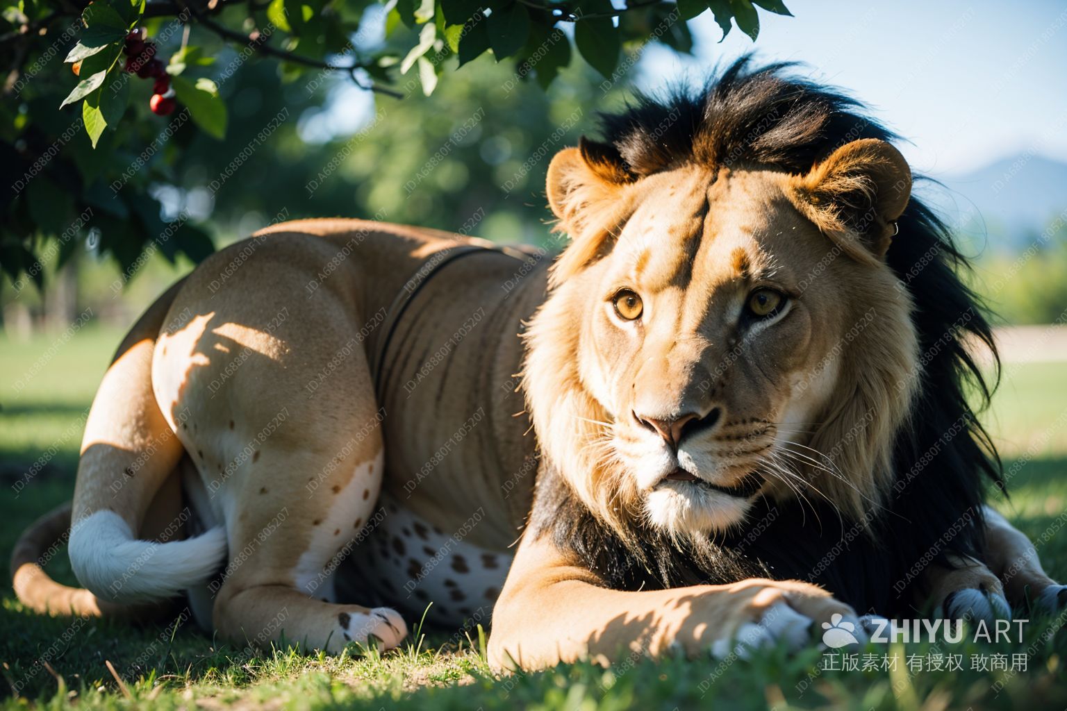 一只鬃毛蓬松的狮子,全身覆盖着黑色和红色的条纹,它