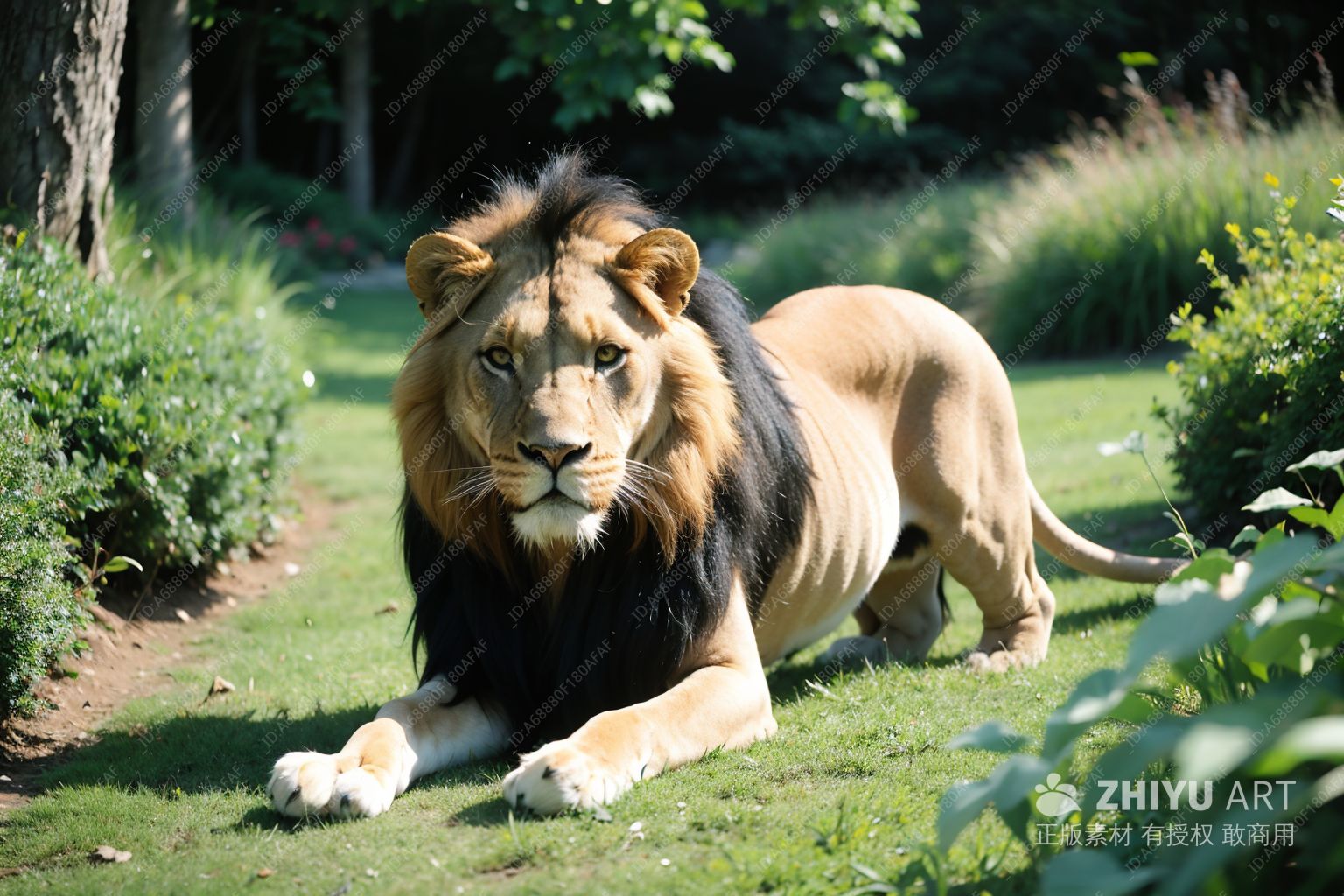一只鬃毛蓬松的狮子,全身覆盖着黑色和红色的条纹,它