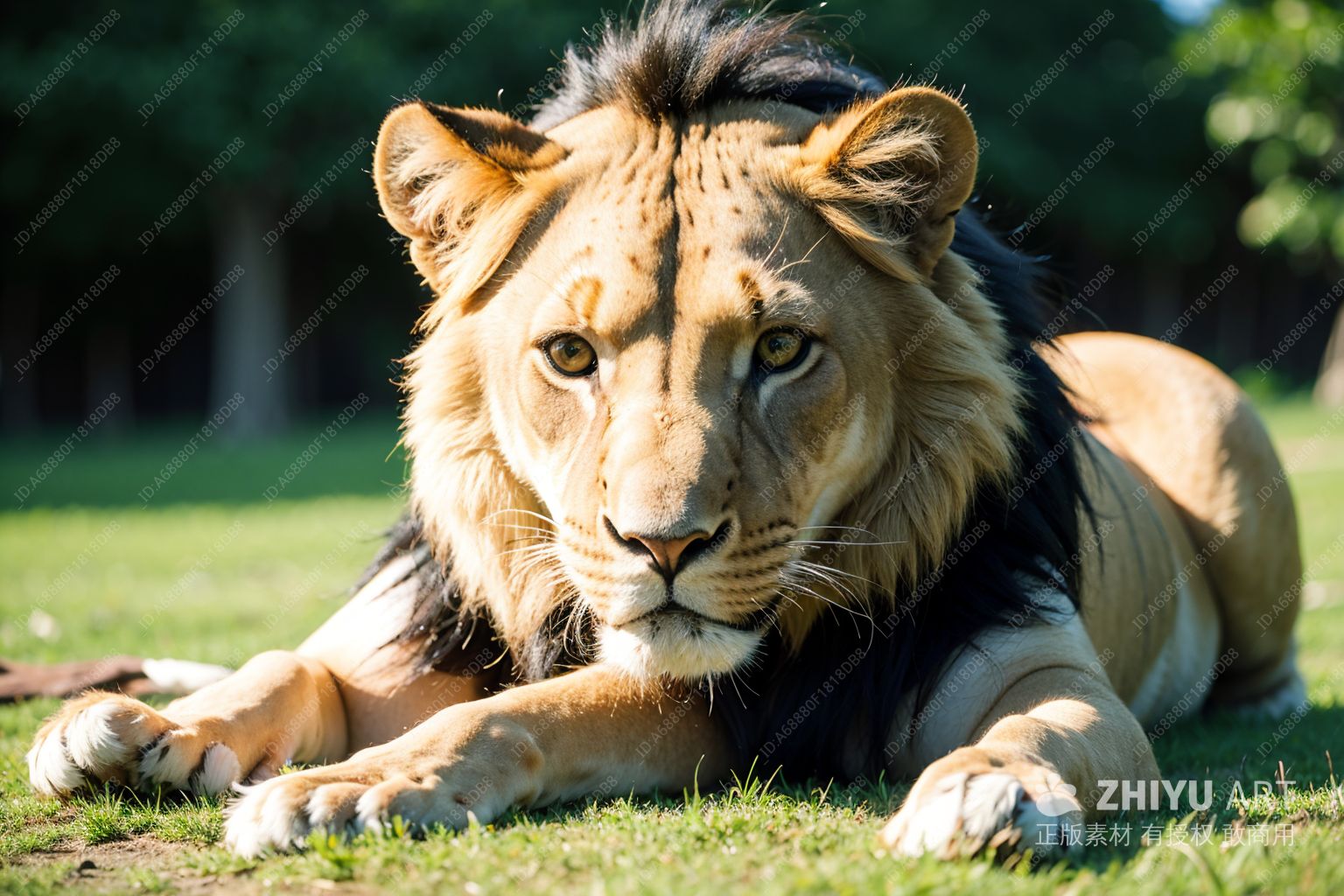 一只雄伟的狮子,全身覆盖着引人注目的黑红色条纹皮毛