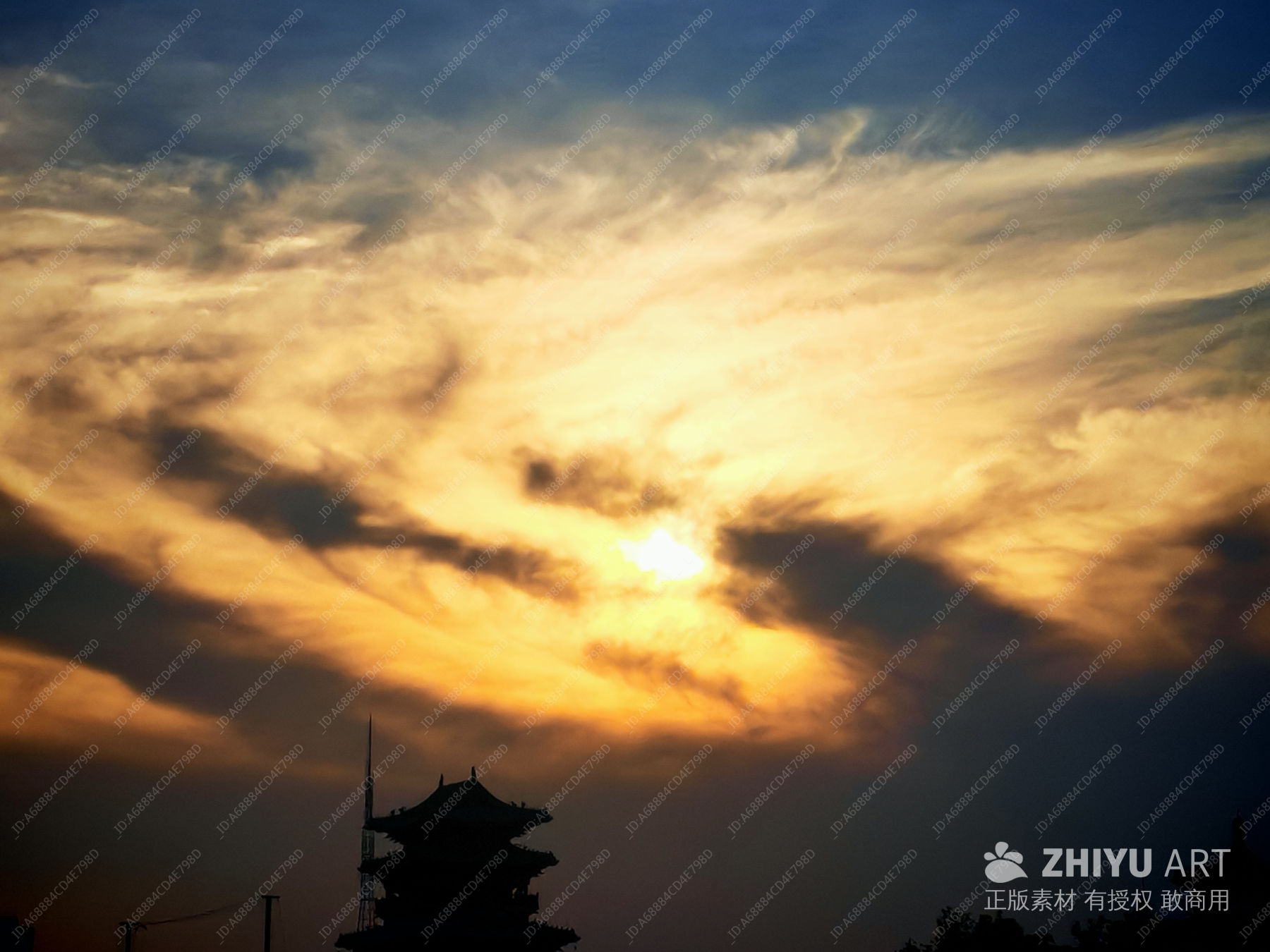 夕阳下的古塔剪影