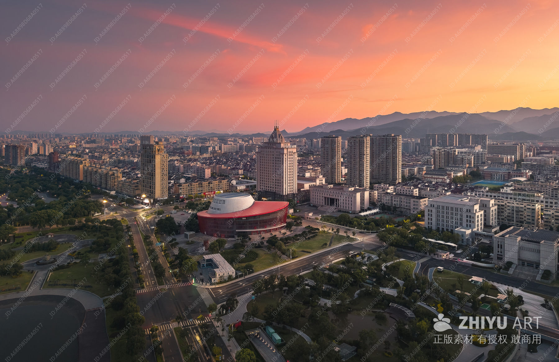 城市与山峦的日落景色