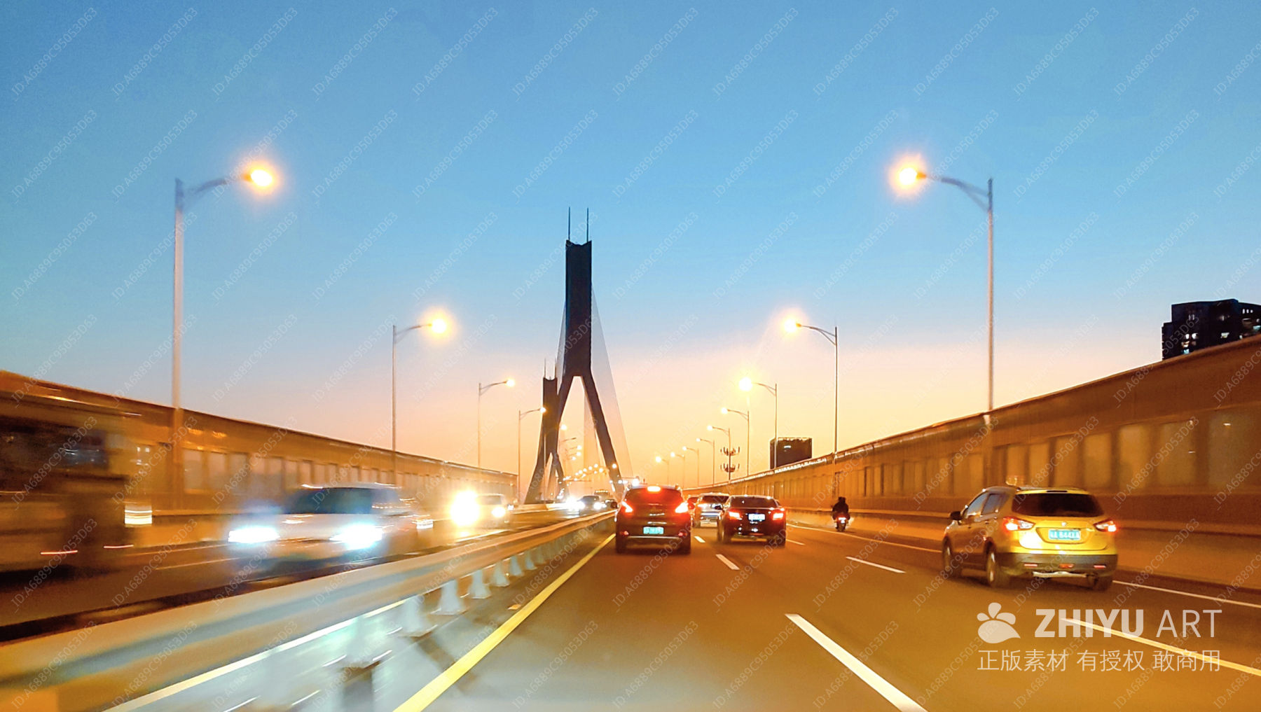 都市黄昏下的繁忙桥头