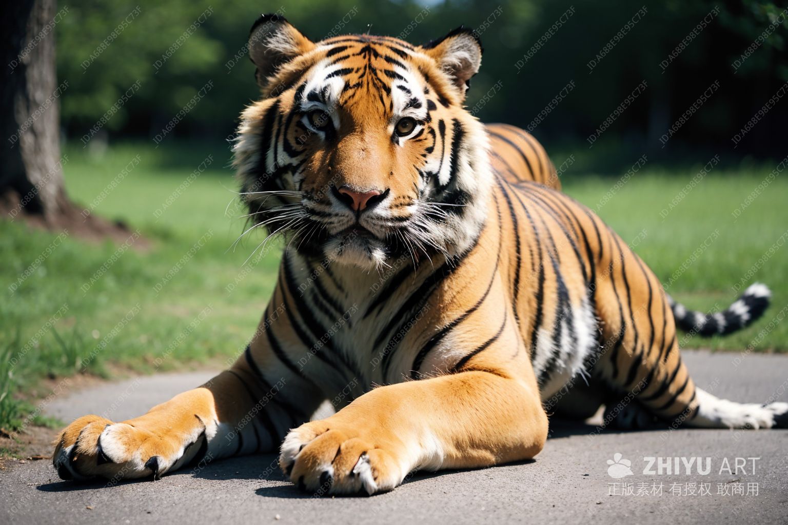 一只老虎在行走,它的身体被液体浸湿。超现实主义风格