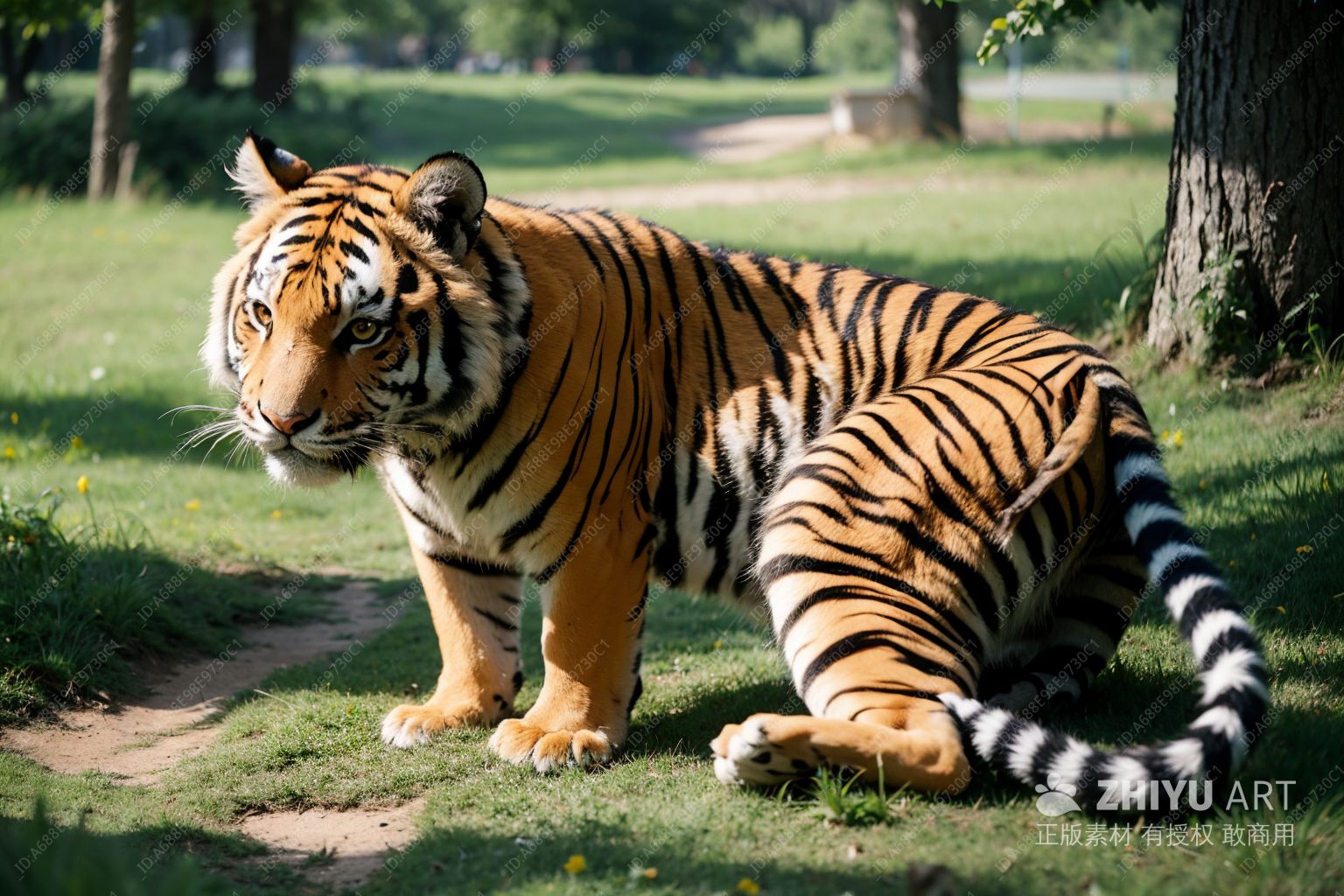 一只老虎在行走,它的身体被液体浸湿。超现实主义风格