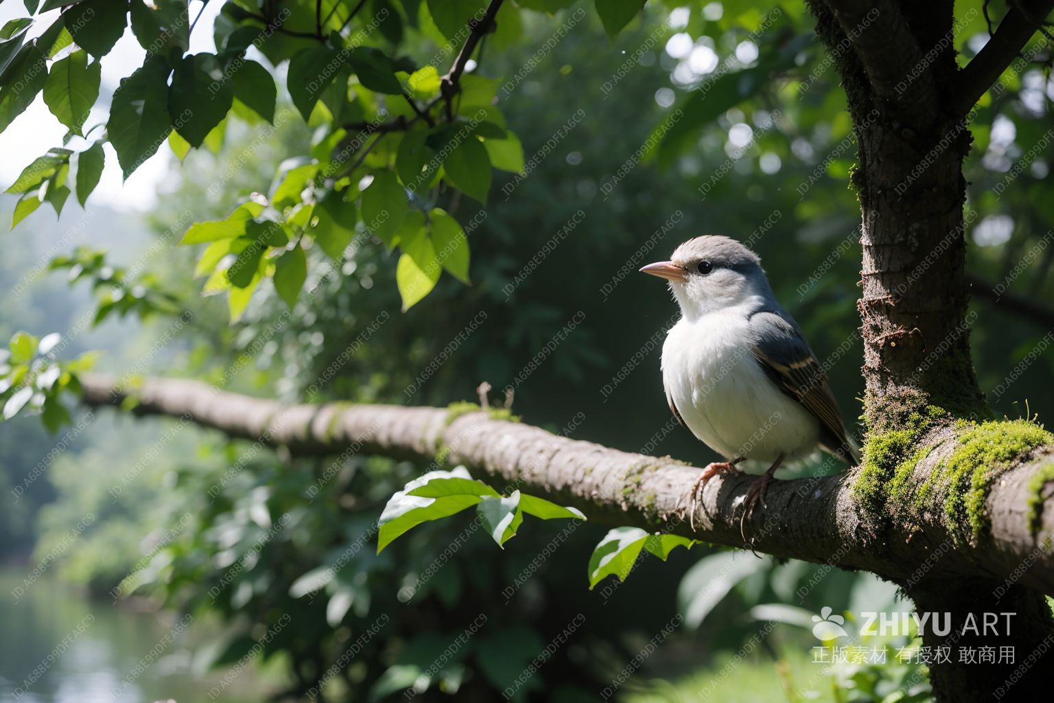 一只小鸟栖息在树枝上,它的翅膀微微张开。小鸟的羽毛