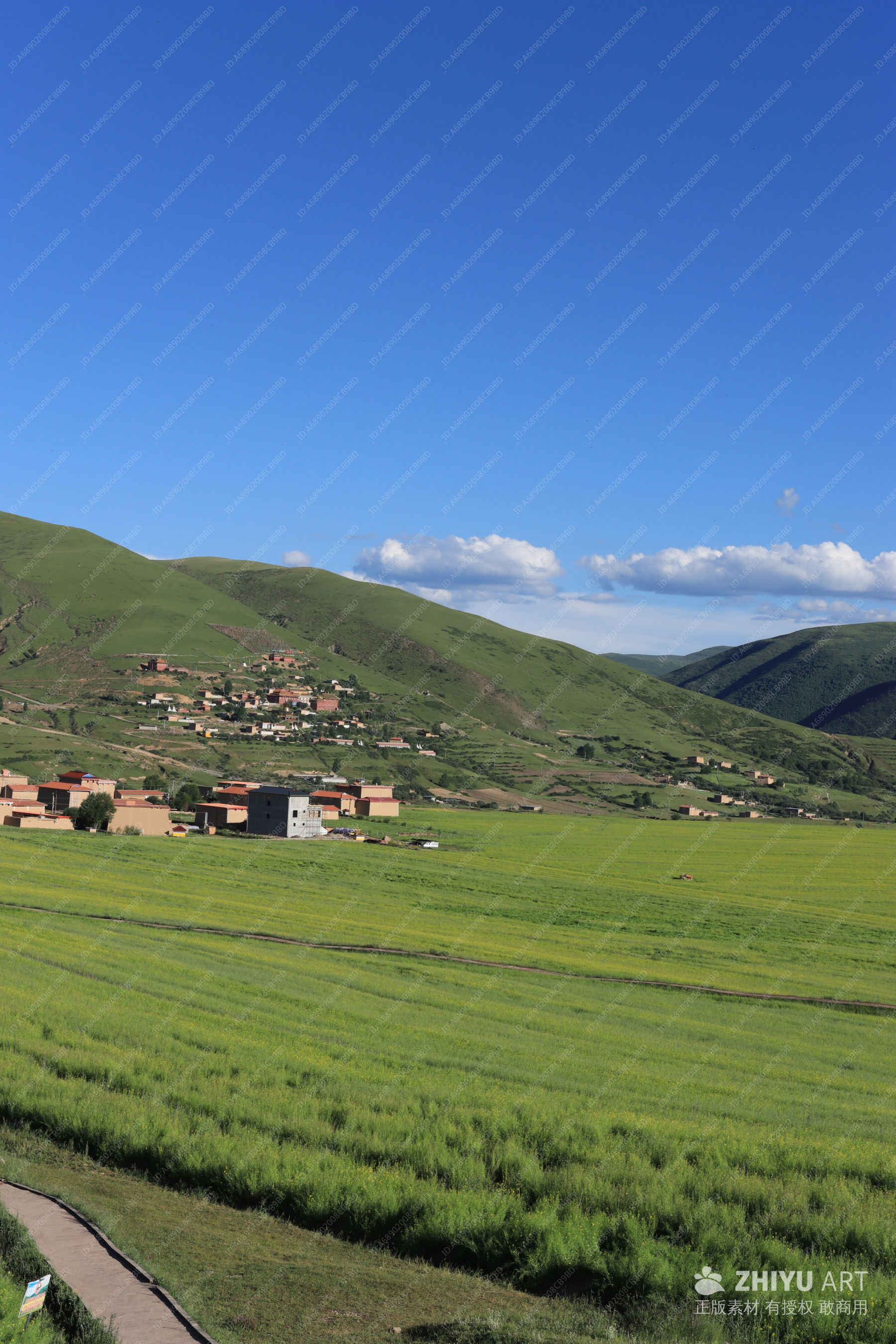 蓝天白云下的绿野