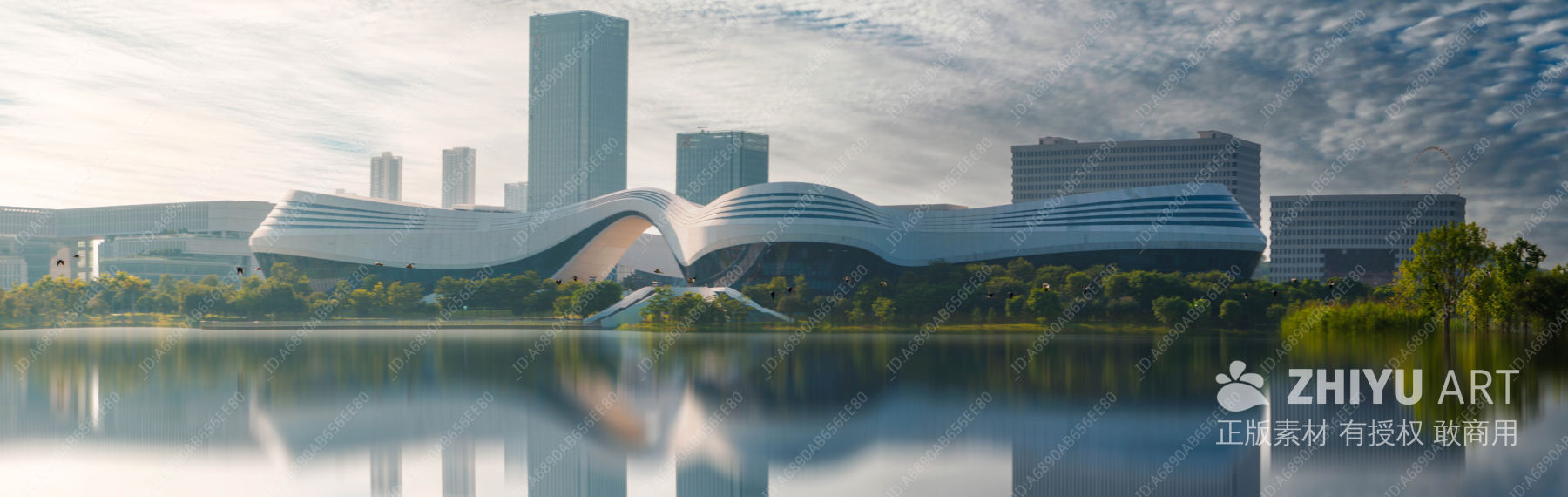 龙湖漾着建筑的梦,飞鸟擦过自由的弧面,抖落一身云影