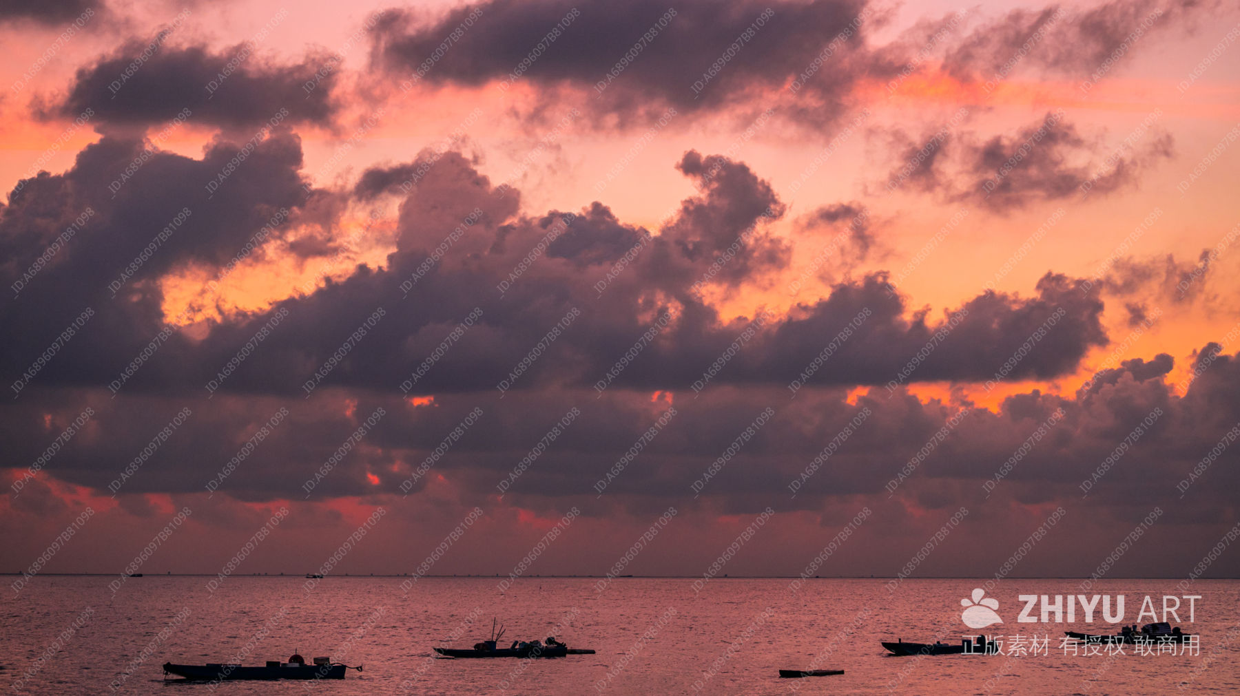 日落渔舟静谧景