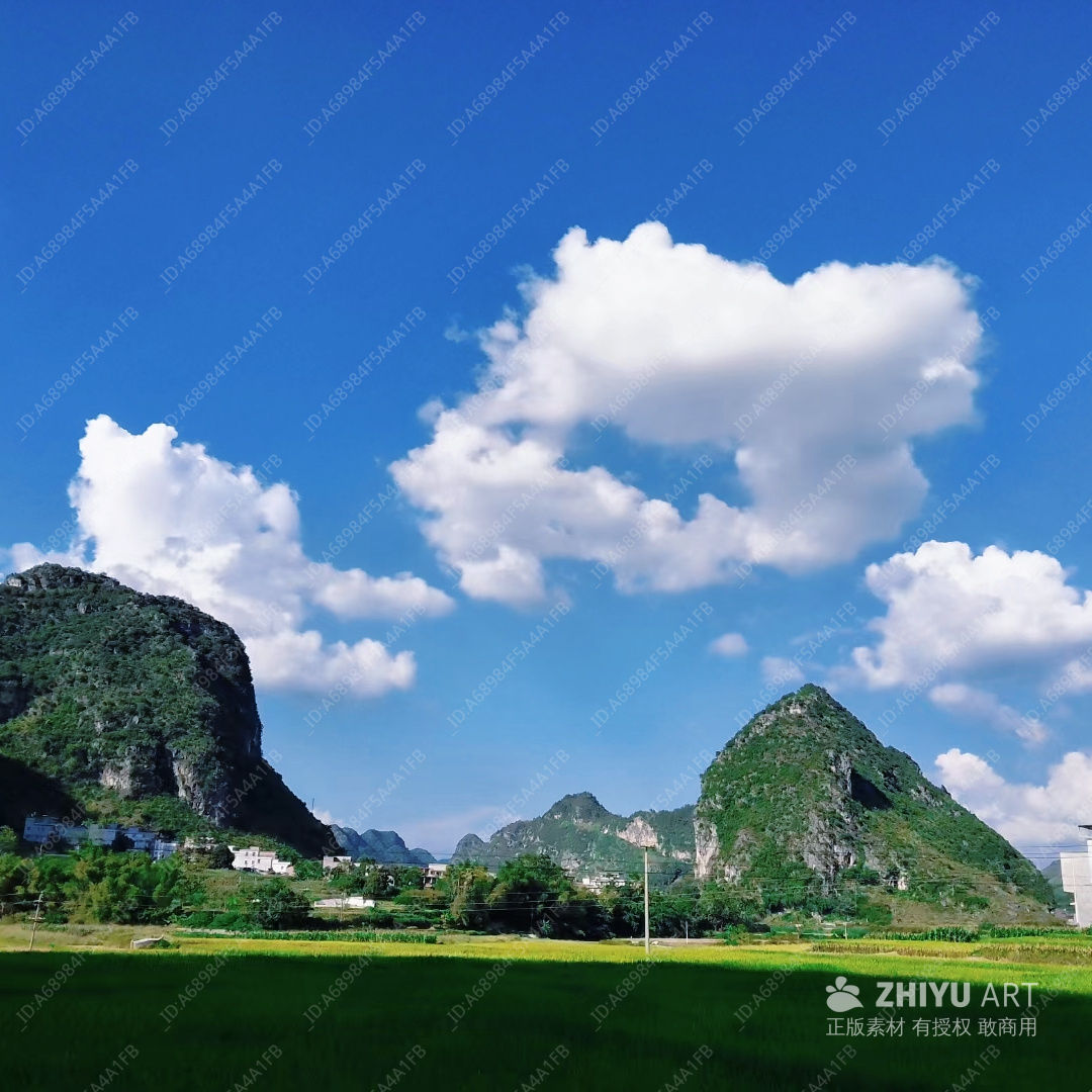 蓝天白云下的山水田园