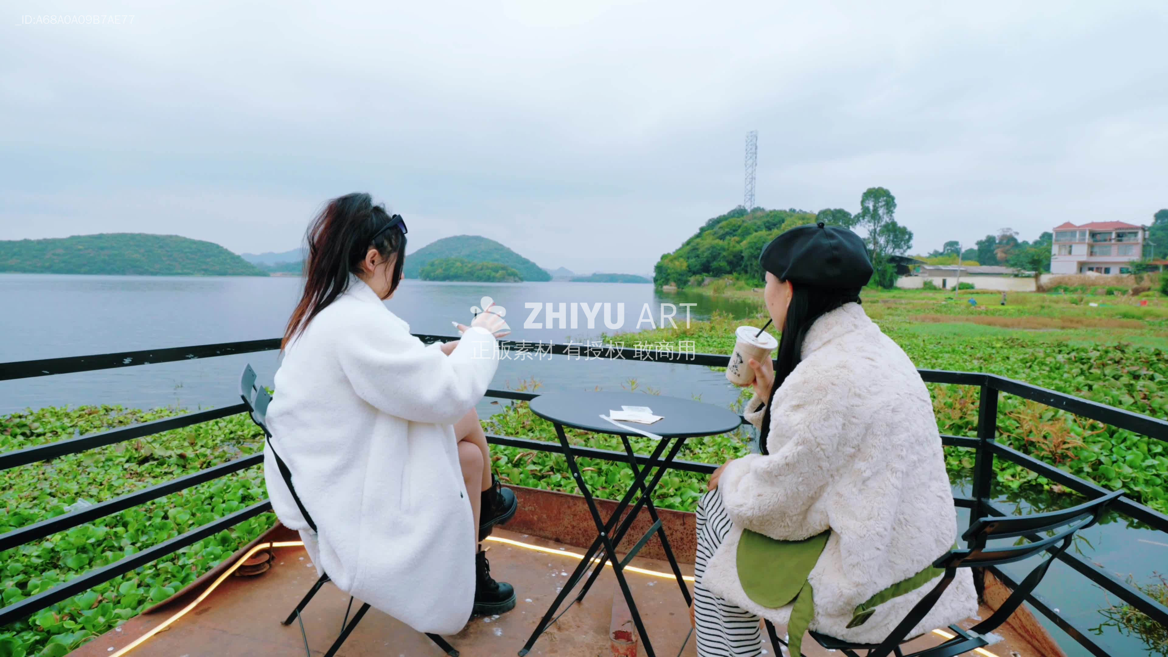 湖边咖啡馆的悠闲时光