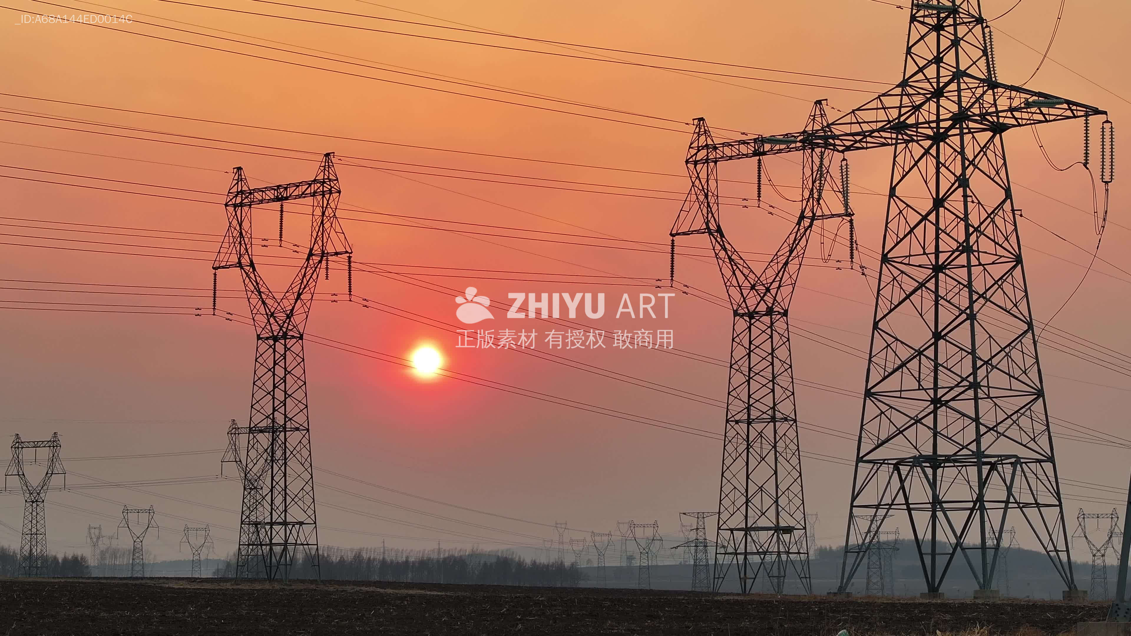 航拍电塔夕阳02 4K视频素材 电影感视频素材 1