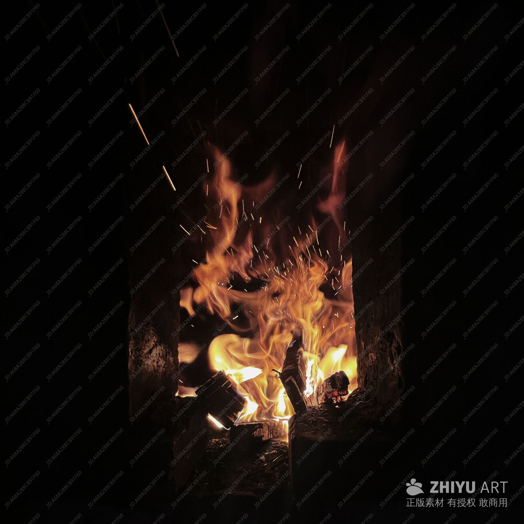 夜幕下的篝火燃烧