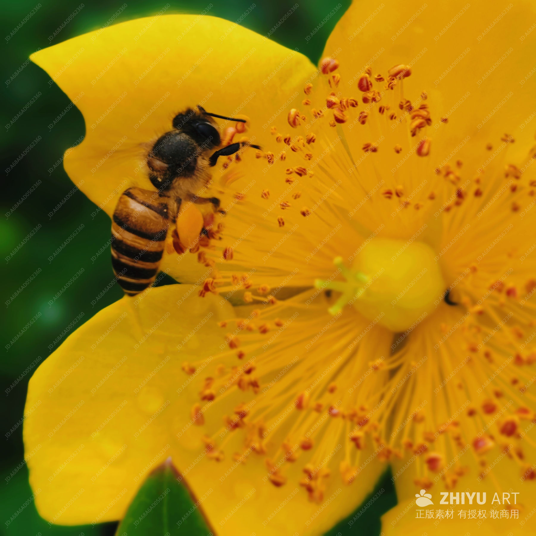 黄花蕊绽,蜂影轻停,定格自然里的小美好。