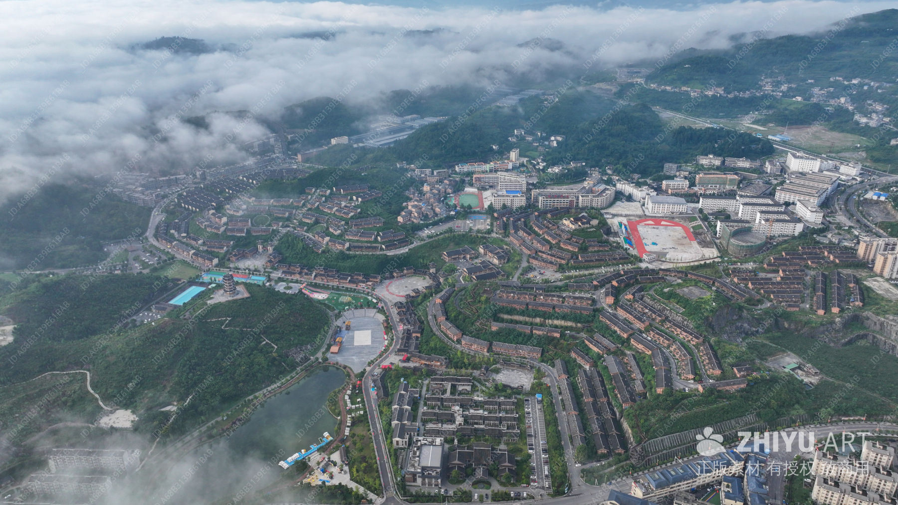 航拍晴隆阿妹戚托小镇 云雾缭绕小镇 20