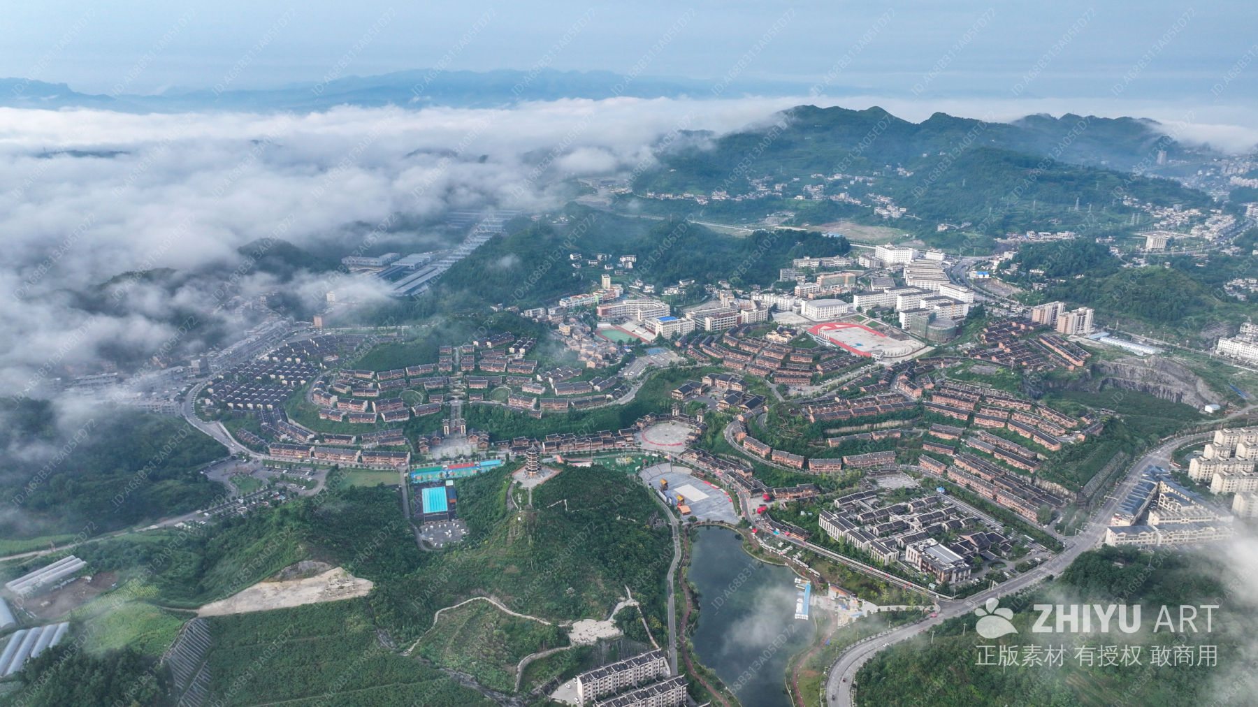 航拍晴隆阿妹戚托小镇 云雾缭绕小镇 14