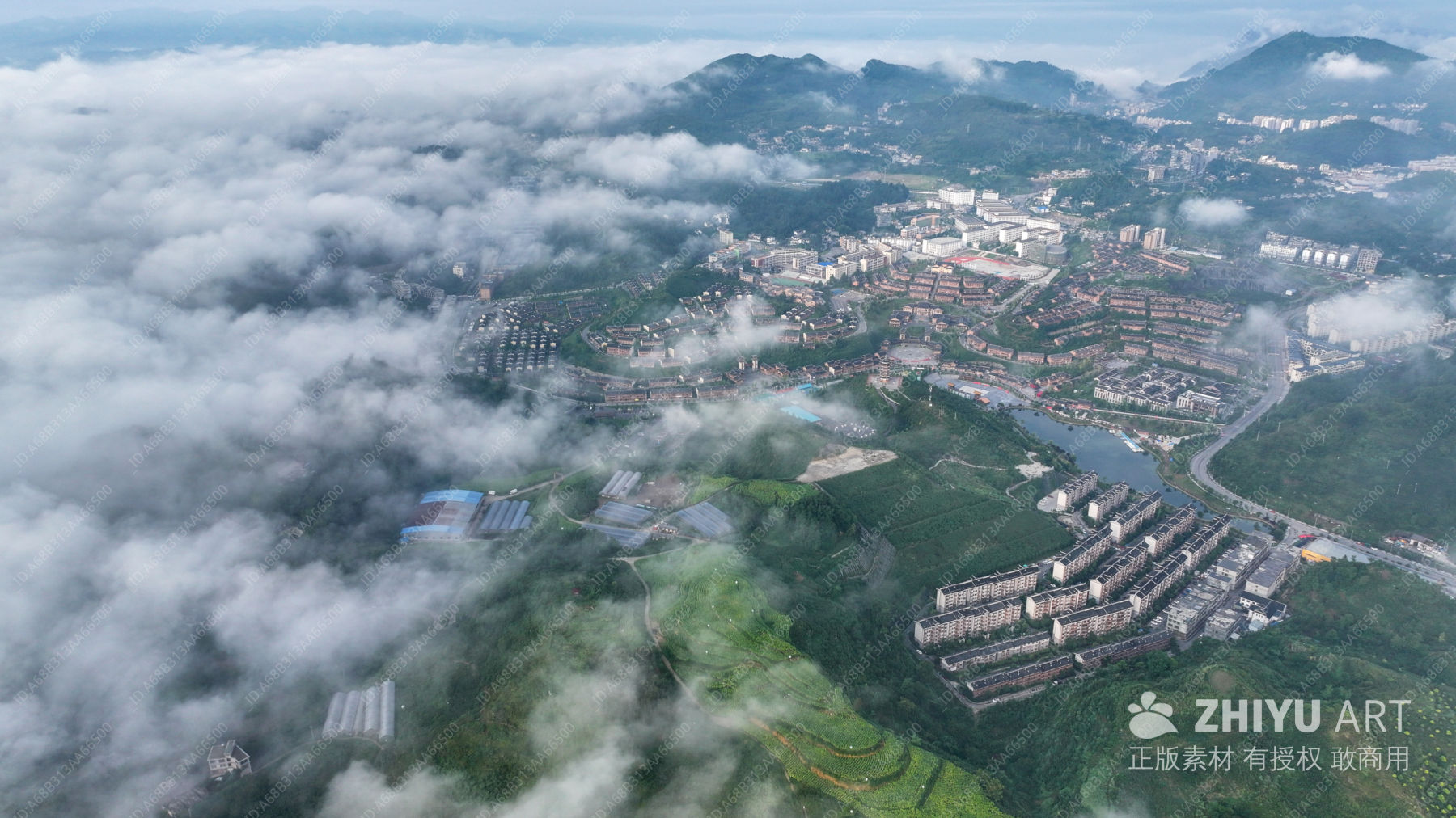 航拍晴隆阿妹戚托小镇 云雾缭绕小镇 14