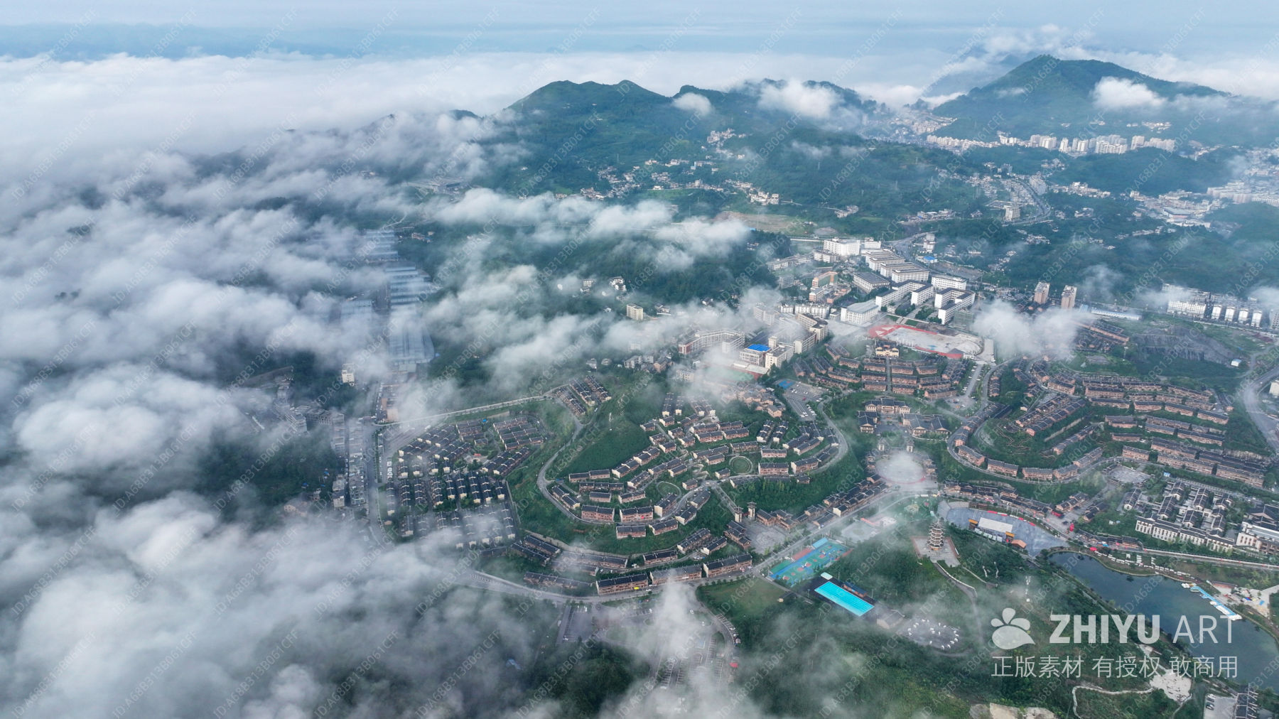 航拍晴隆阿妹戚托小镇 云雾缭绕小镇 20