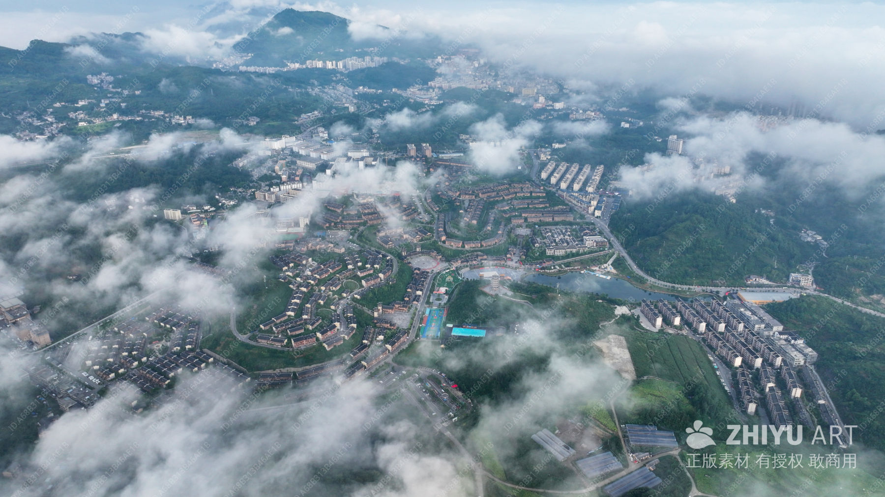 航拍晴隆阿妹戚托小镇 云雾缭绕小镇 20