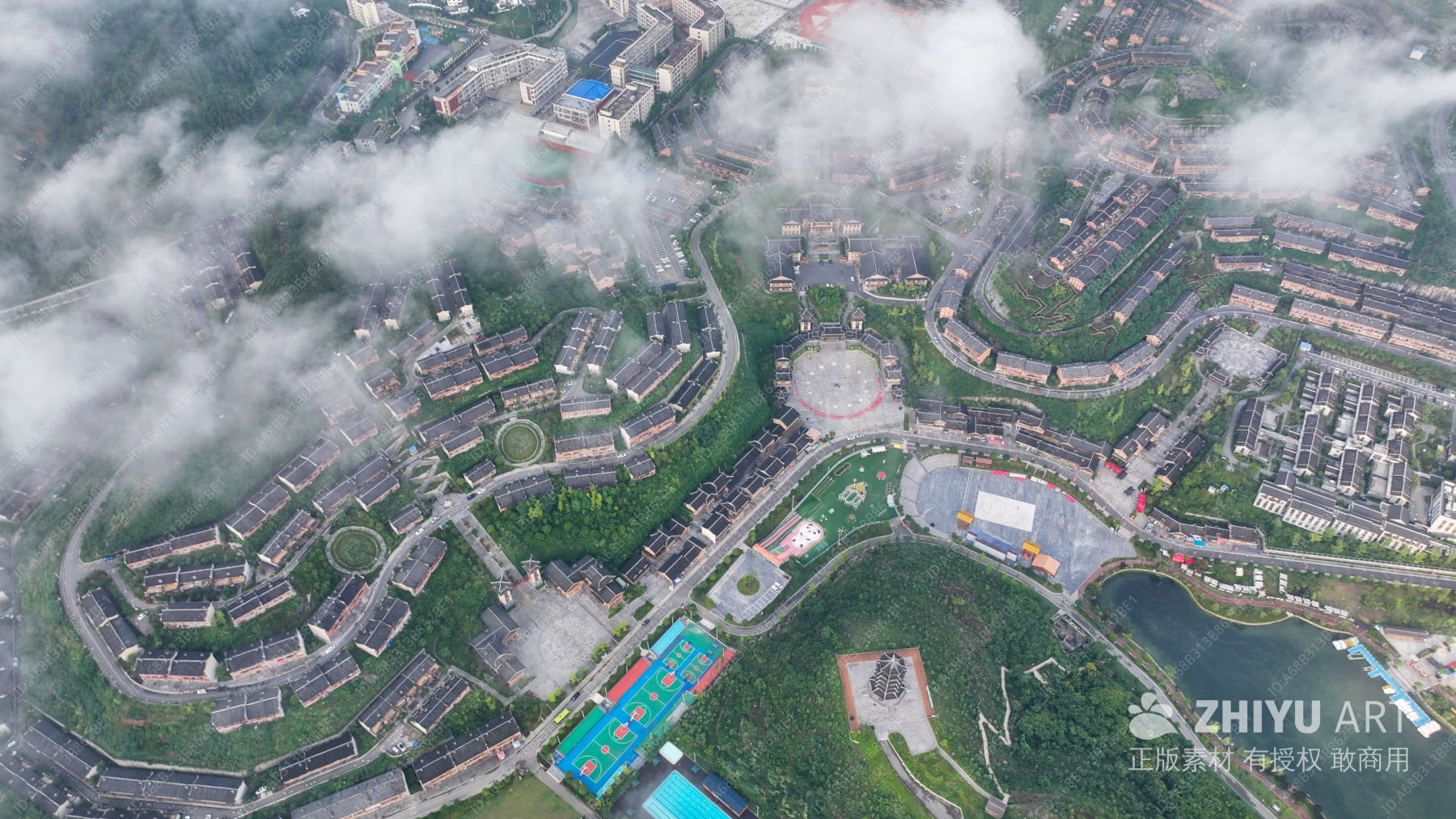 航拍晴隆阿妹戚托小镇 云雾缭绕小镇 14