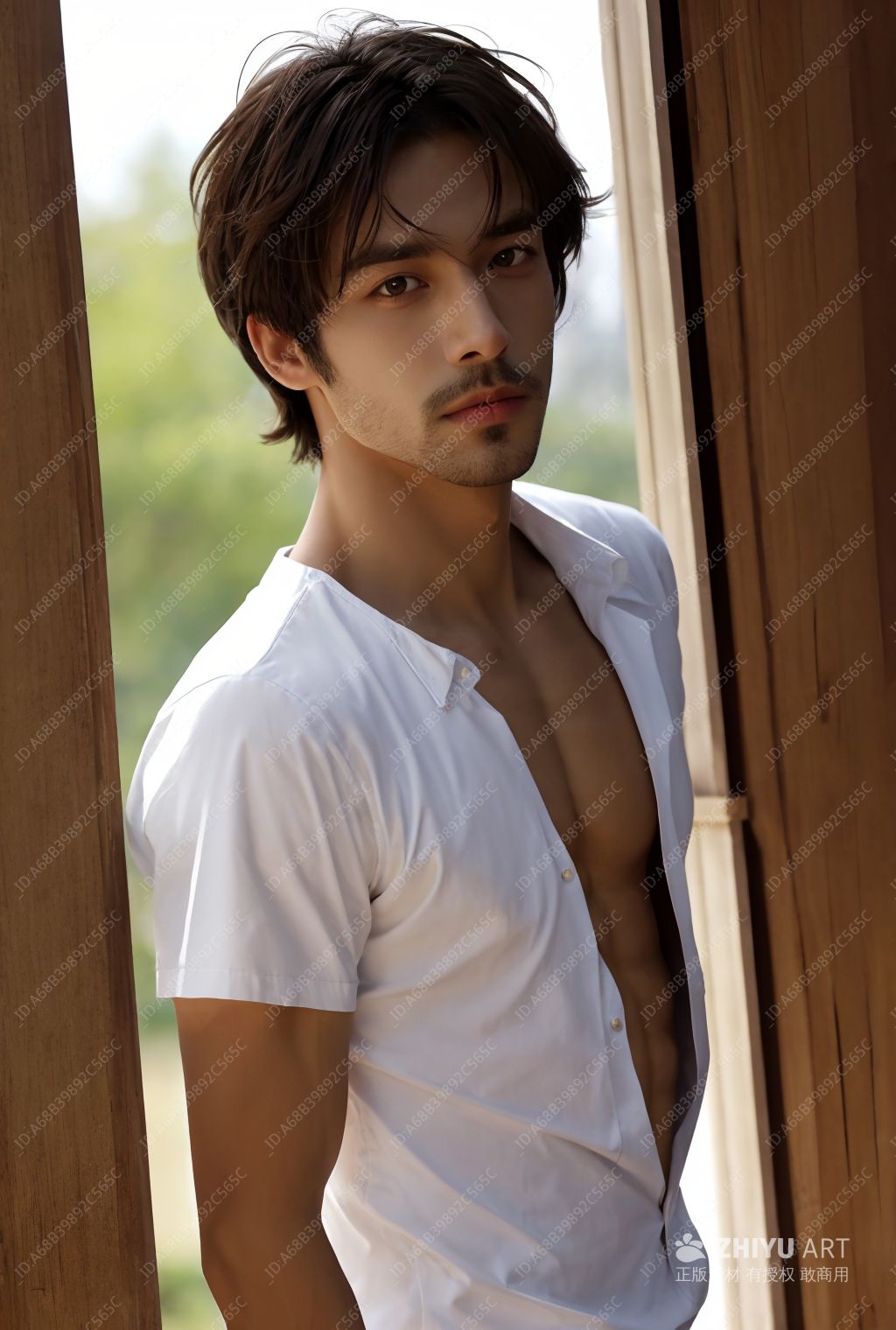 一个年轻男子,留着棕色、直发、刘海,身穿白色衬衫,