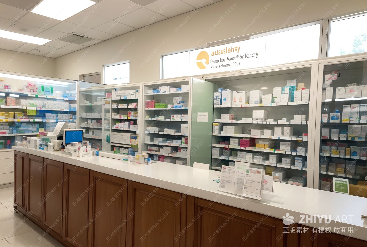 一个3D药房十字标志,颜色为绿色和蓝色,公司名称“