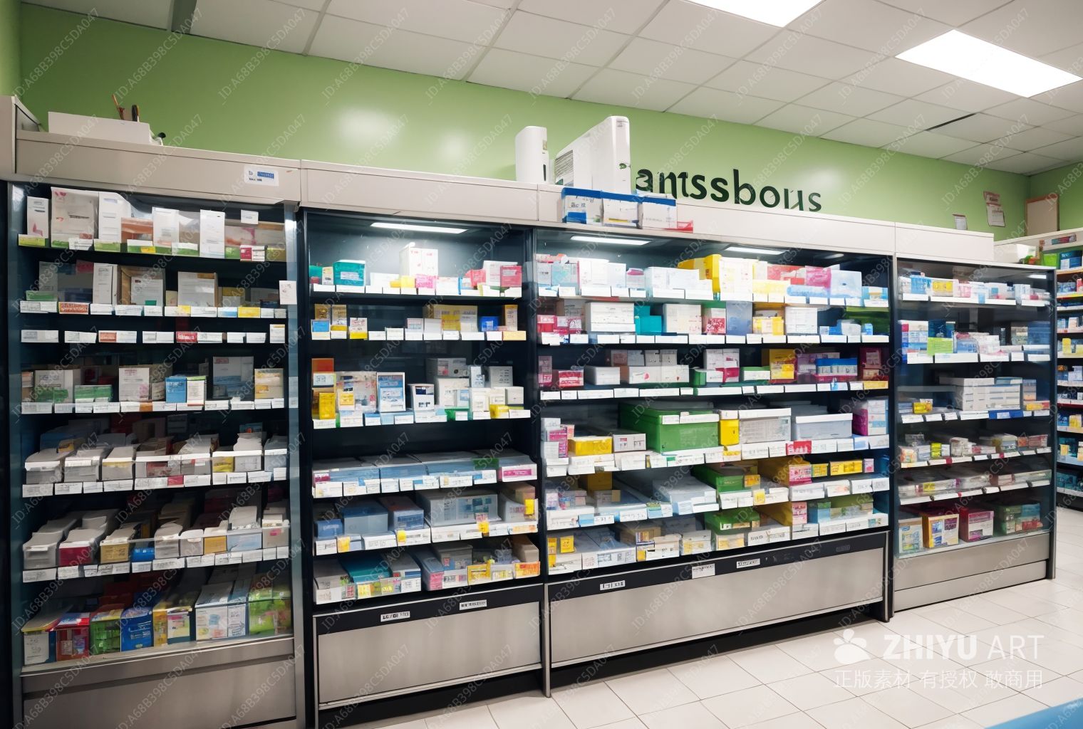 一个3D药房十字标志,颜色为绿色和蓝色,公司名称“