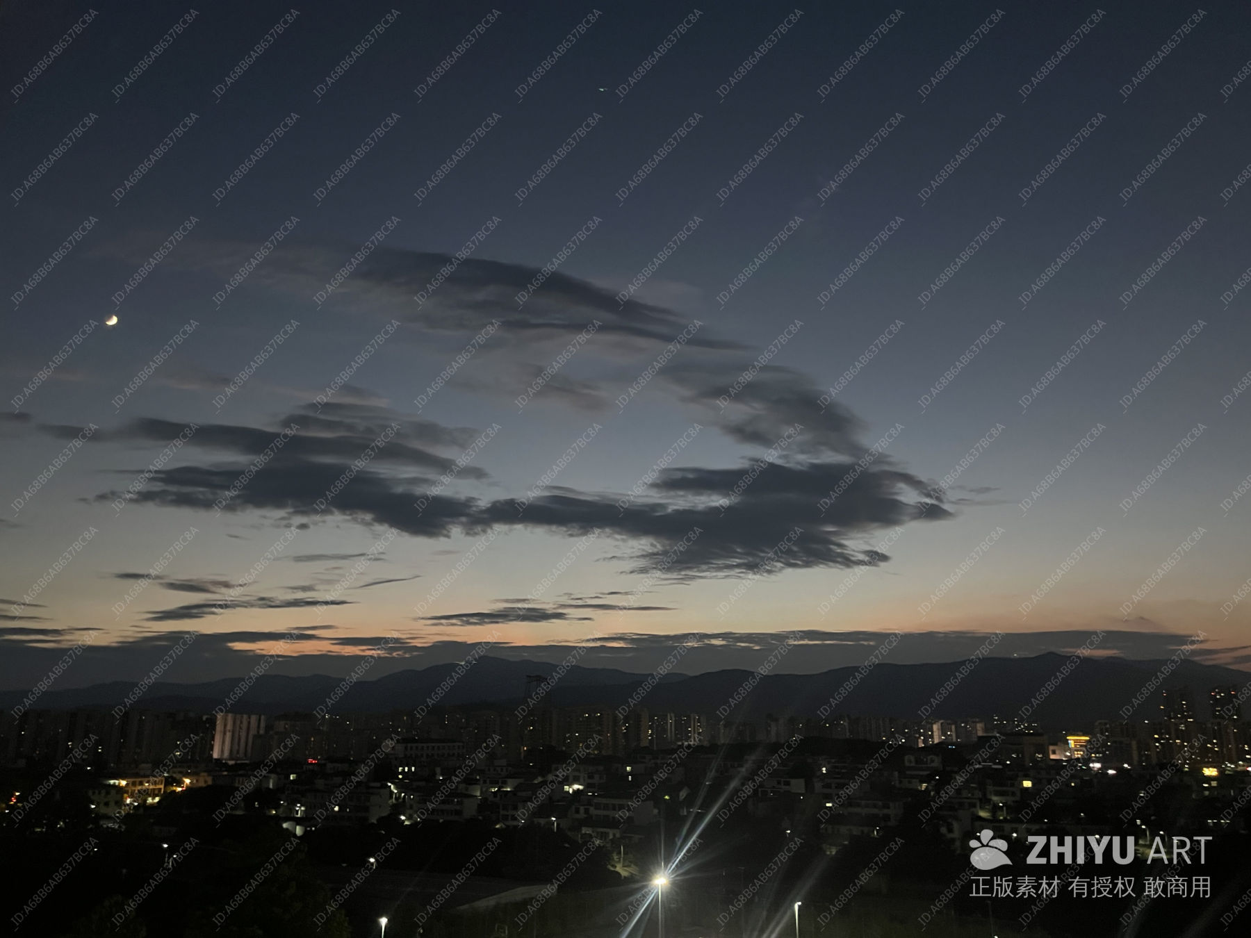 夜幕下的城市与云影