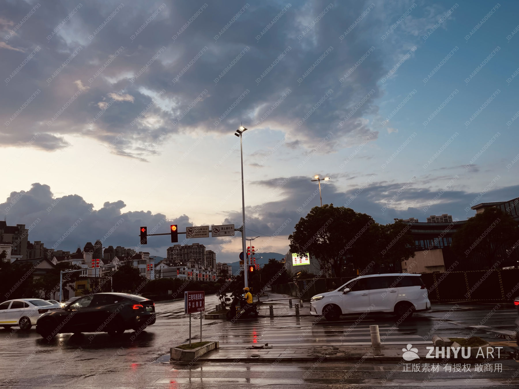 雨后黄昏的城市街景