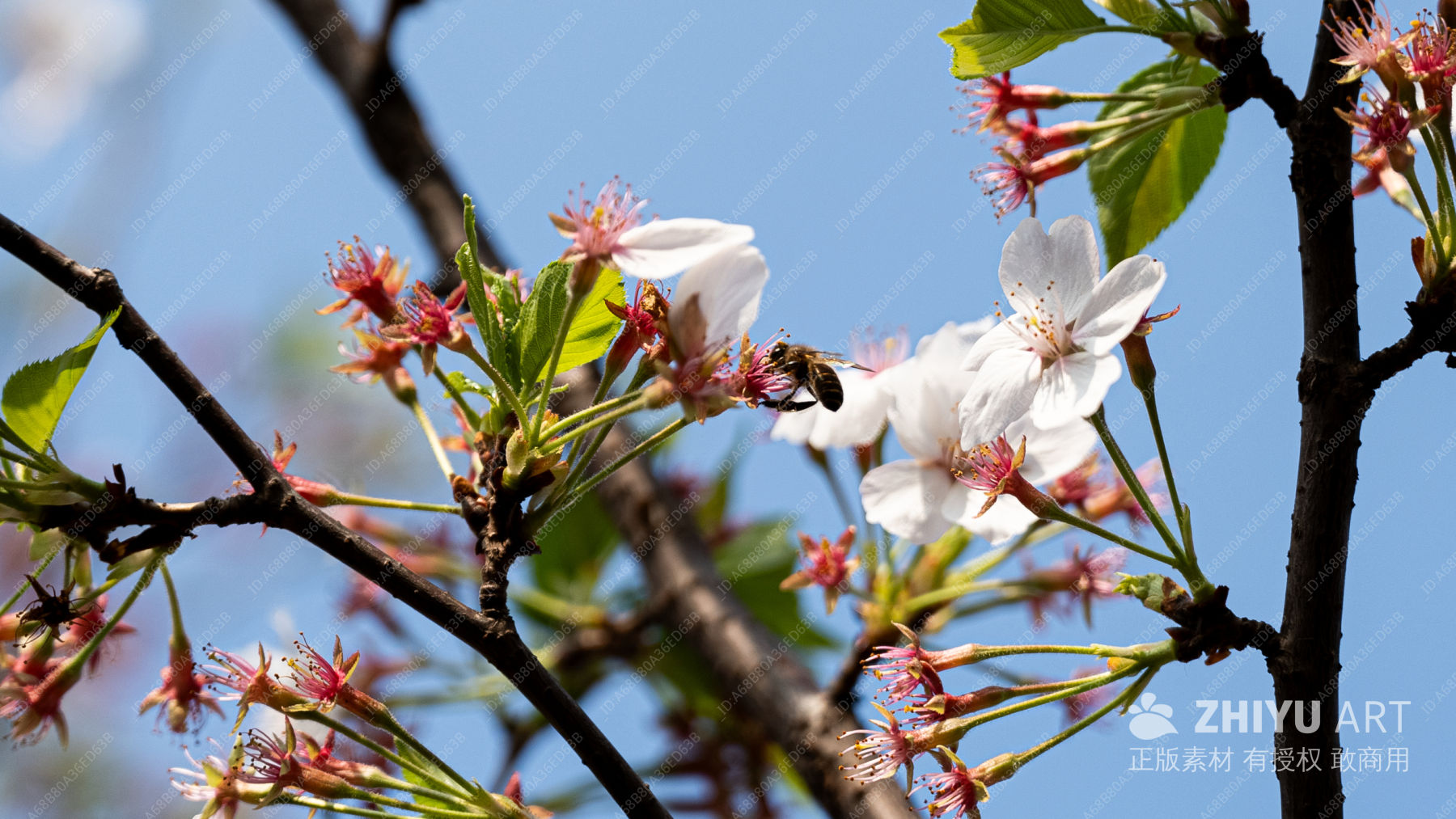 樱花 蜜蜂 春天 自然 生机 蓝天 摄影 自媒体 治愈 美丽 白色 开花 花 颜色
