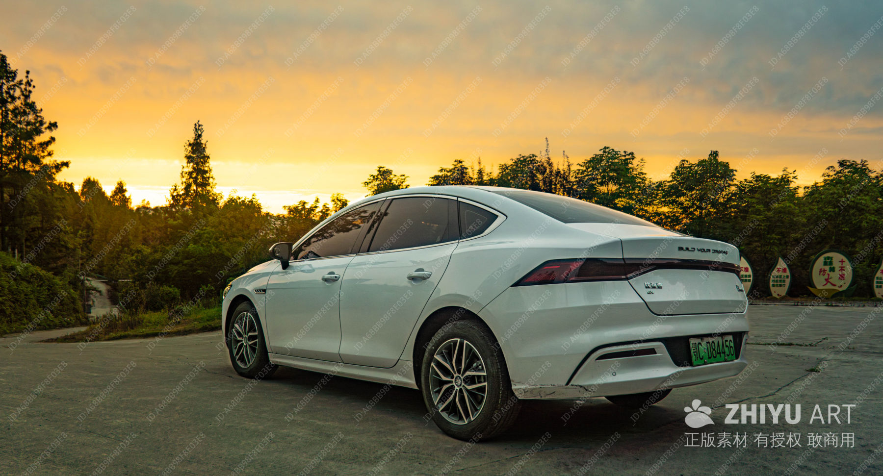 新能源车与黄昏美景