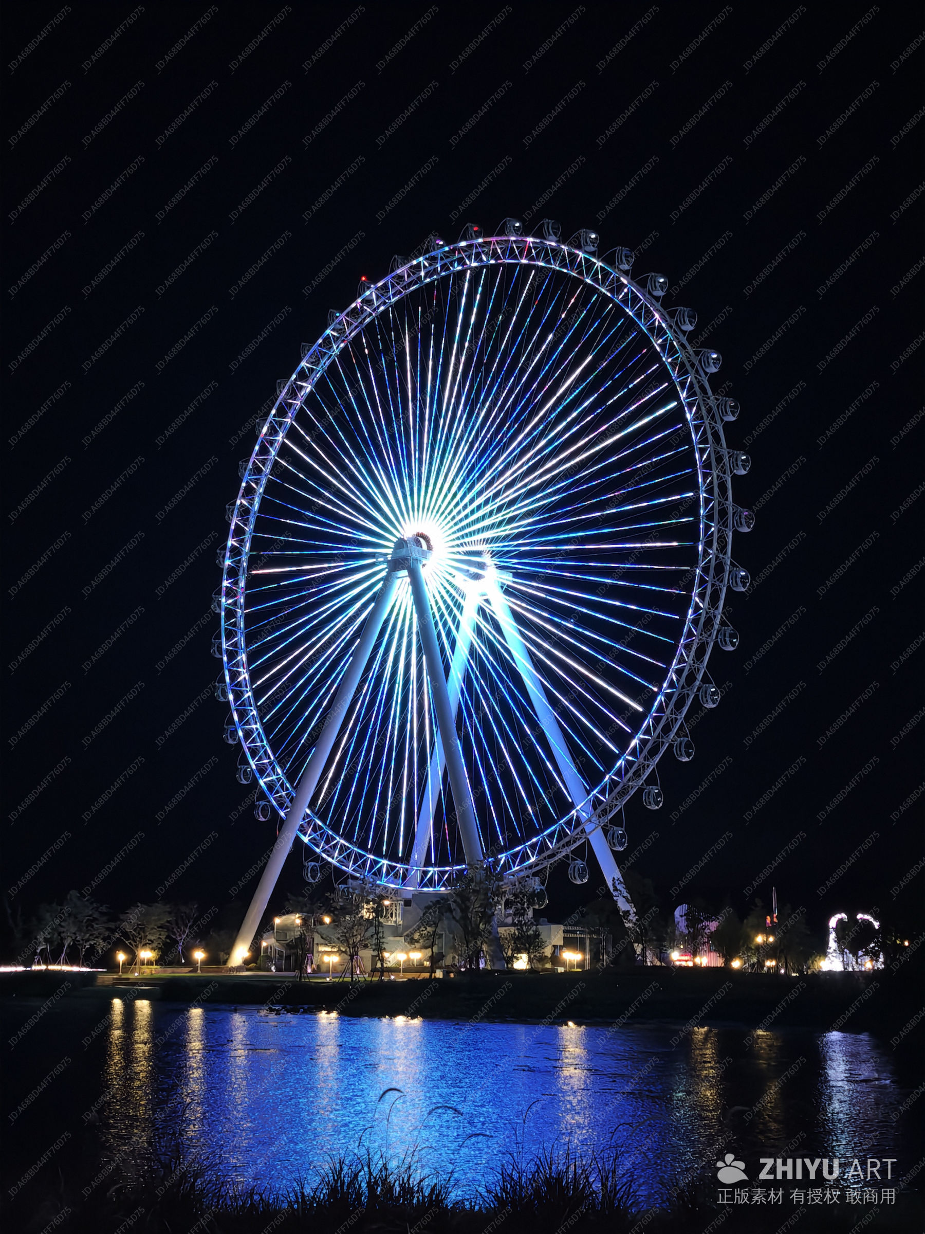 夜景 摩天轮 灯光 水面反射 浪漫 旅游 社交媒体 摄影 城市景观 地标 夜晚 旅游景点 蓝色 游乐园 午夜 露天游乐场 倒影 游乐设施 轮 地标建筑 自然景观 颜色 汽车部件