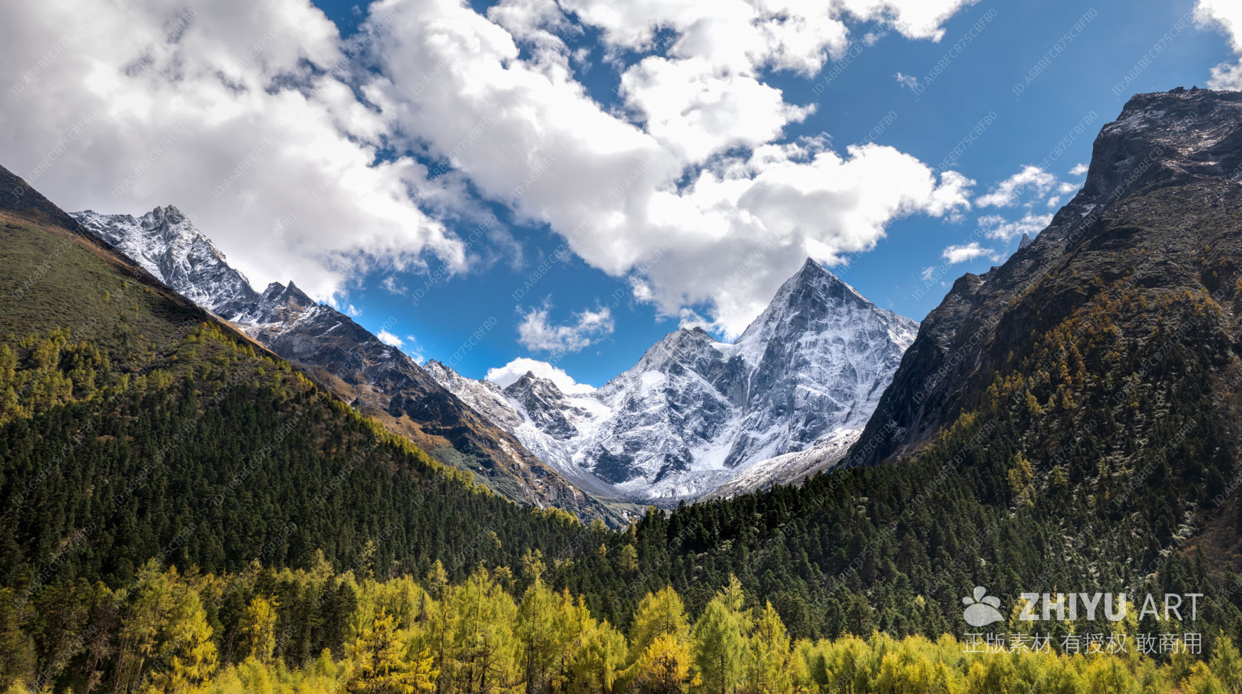 雪山 森林 蓝天 白云 秋色 自然风光 壮丽 宁静 旅行 摄影 自媒体 风景 山脉 荒野 高地 山脊 山谷 山中避暑地 山峰 阿尔卑斯山 山 徒步 雪 自然景观