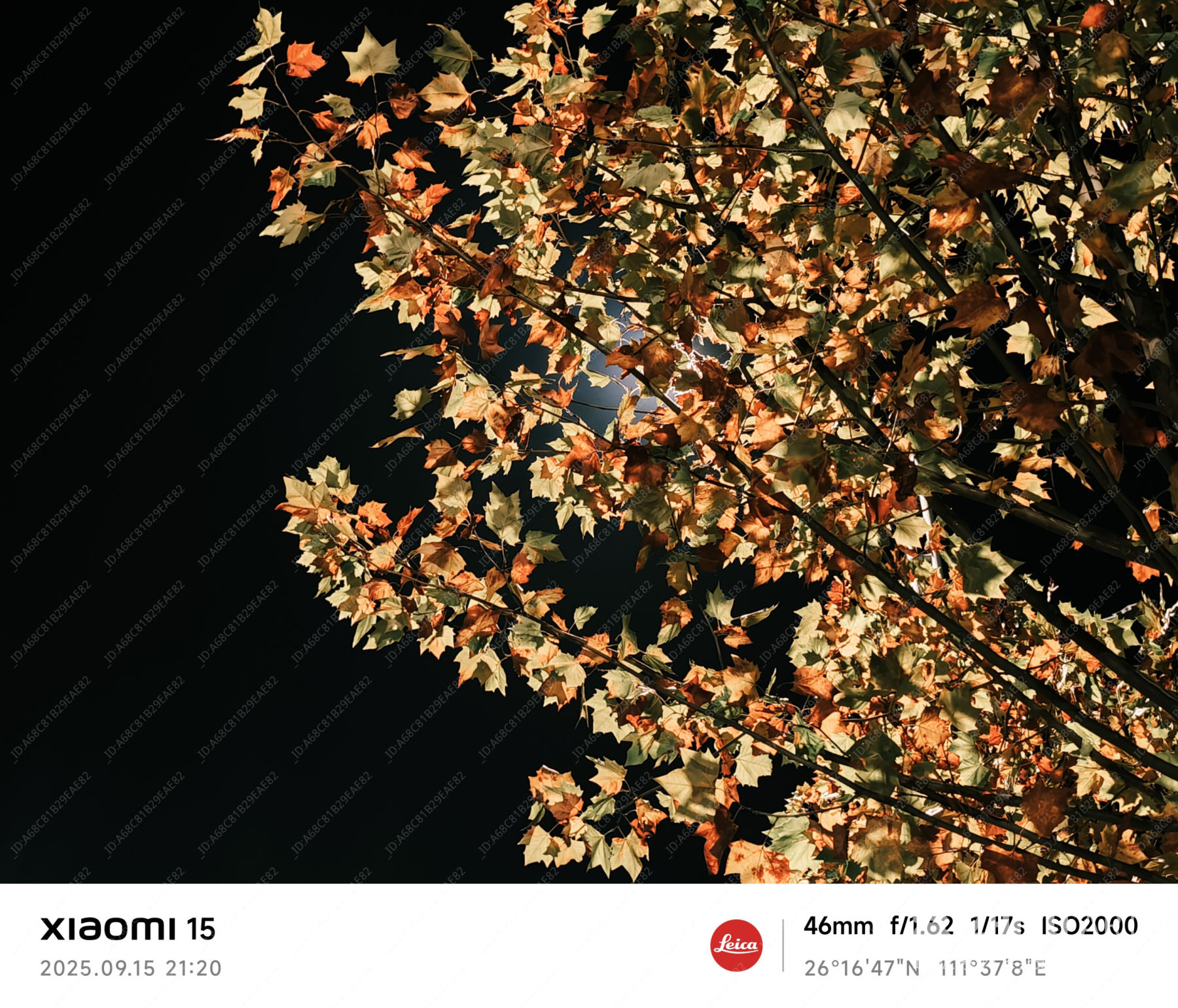 秋夜光影中的落叶